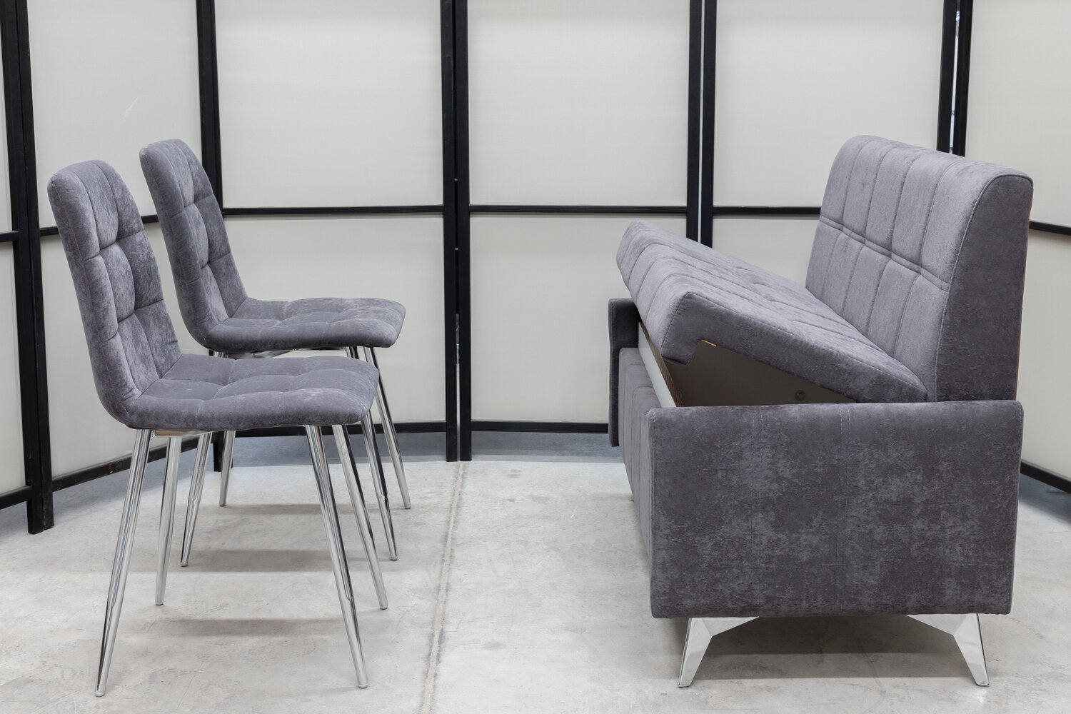 Кухонный диван Авалон со стульями (2 шт.), 120х56 см, обивка моющаяся, антивандальная, антикоготь, цвет - графит. интересное: