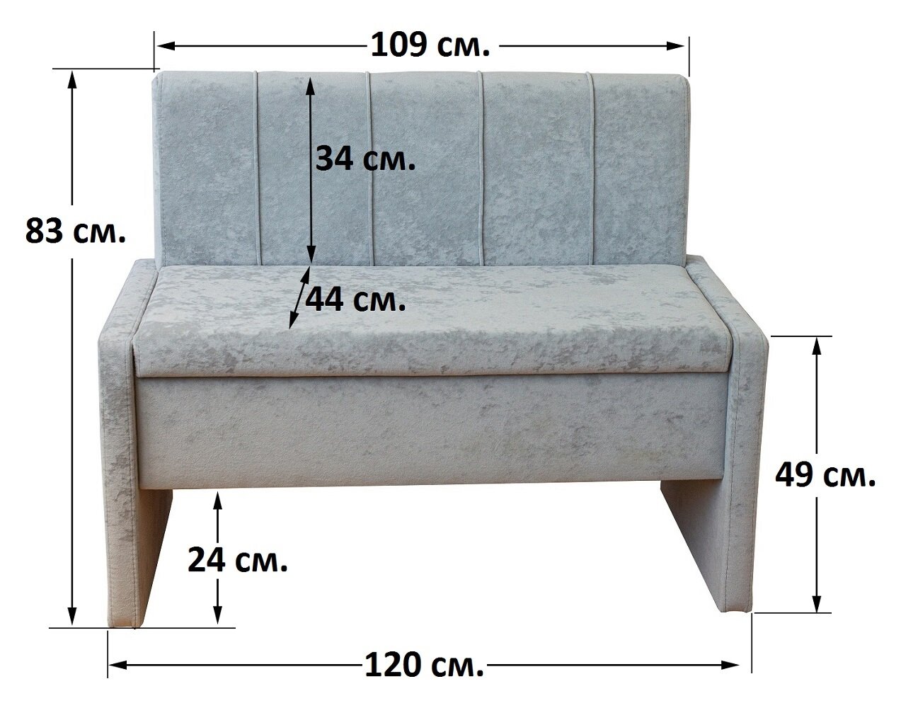 Диван кухонный прямой StylChairs Стиль, ширина 120 см, велюр CRUSH серый