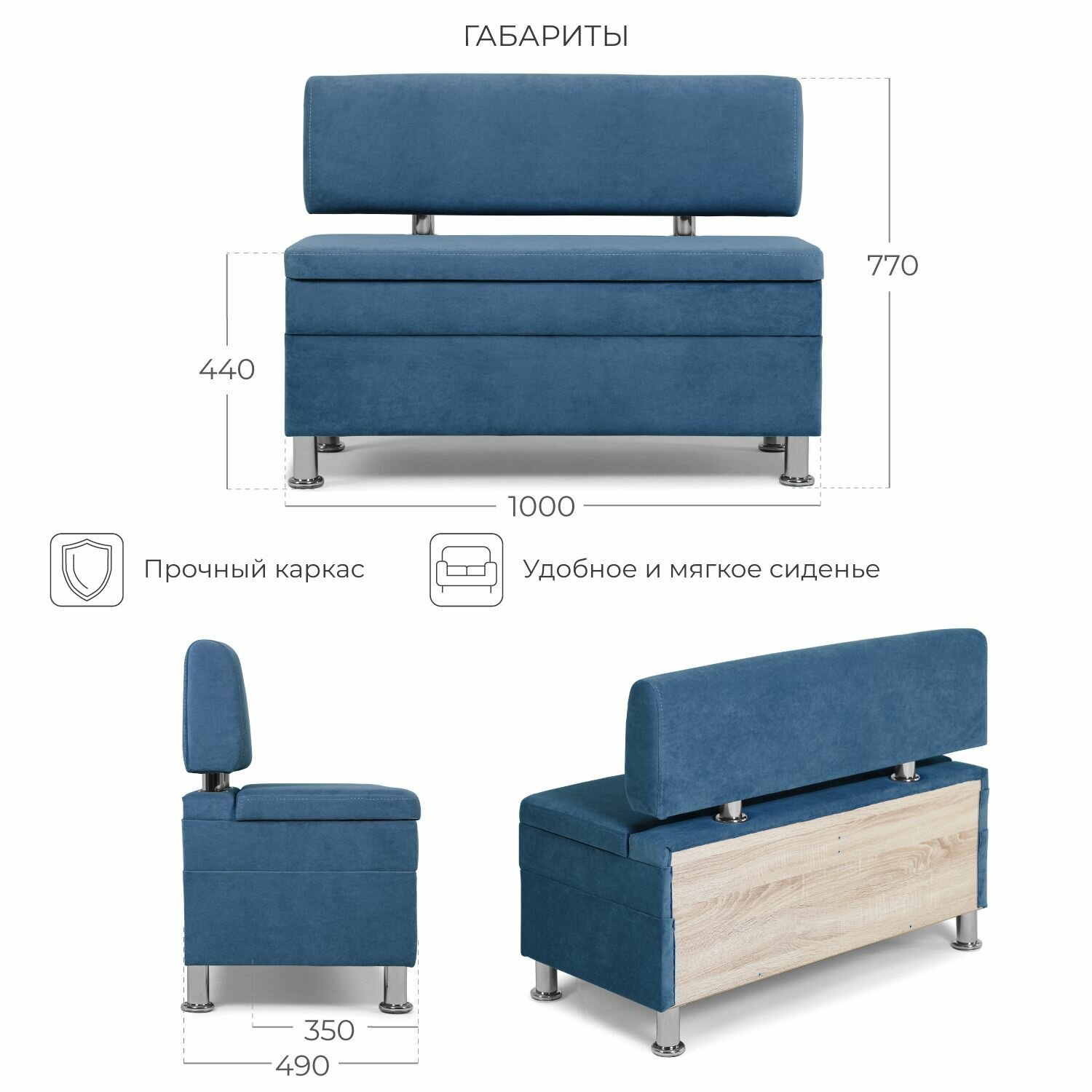 Диван на кухню, прямой, на балкон, в прихожую норта Hippo 1000х490х770 c ящиком для хранения, синий интересное: