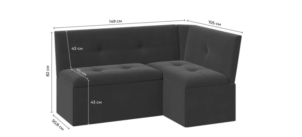 Кухонный уголок "Квадро 3" PRIME, угловой, с ящиком для хранения, L=149 см, велюр, цвет серый интересное:
