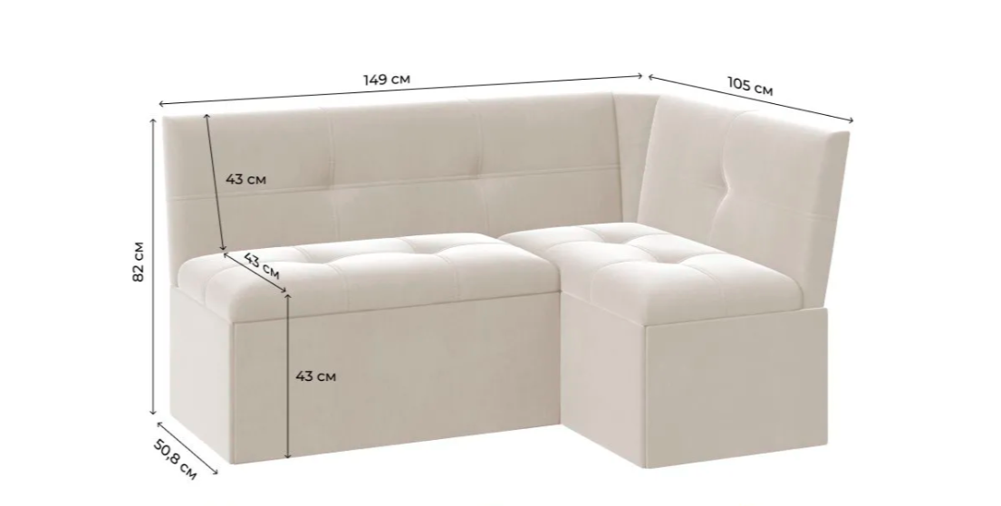 Кухонный уголок "Квадро 3" PRIME , угловой, с ящиком для хранения, L=149 см, велюр, цвет бежевый интересное:
