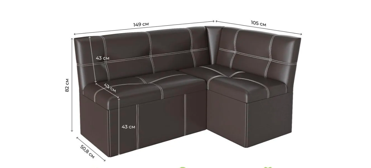Кухонный уголок "Квадро 3" PRIME, угловой, с местом для хранения, L=149 см экокожа, цвет коричневый интересное: