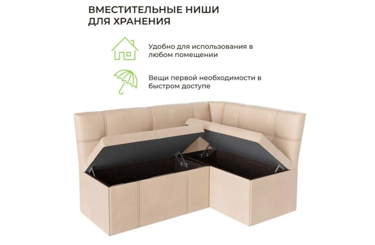 Кухонный уголок "Квадро 3" PRIME, угловой, с ящиком для хранения, L=149 см, экокожа бежевая интересное: