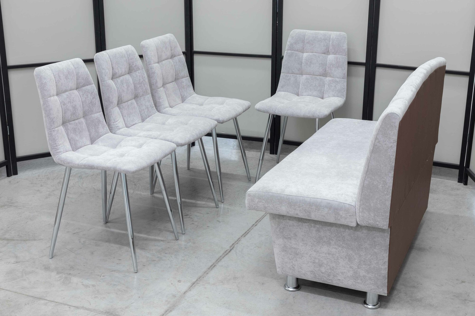 Купить Кухонный диван Альт с 4-мя стульями, 120х56 см, обивка моющаяся, антивандальная, антикоготь, цвет - светло-серый.
