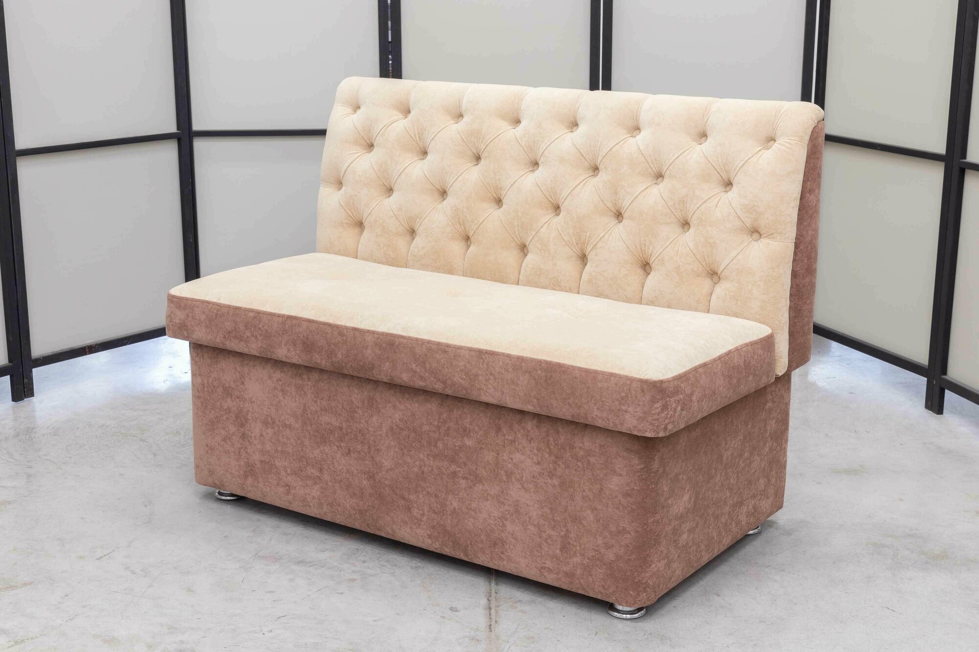 Кухонный прямой диван Монро с ящиком, 120х65 см, обивка моющаяся, антивандальная, антикоготь, цвет крем - мокка интересное: