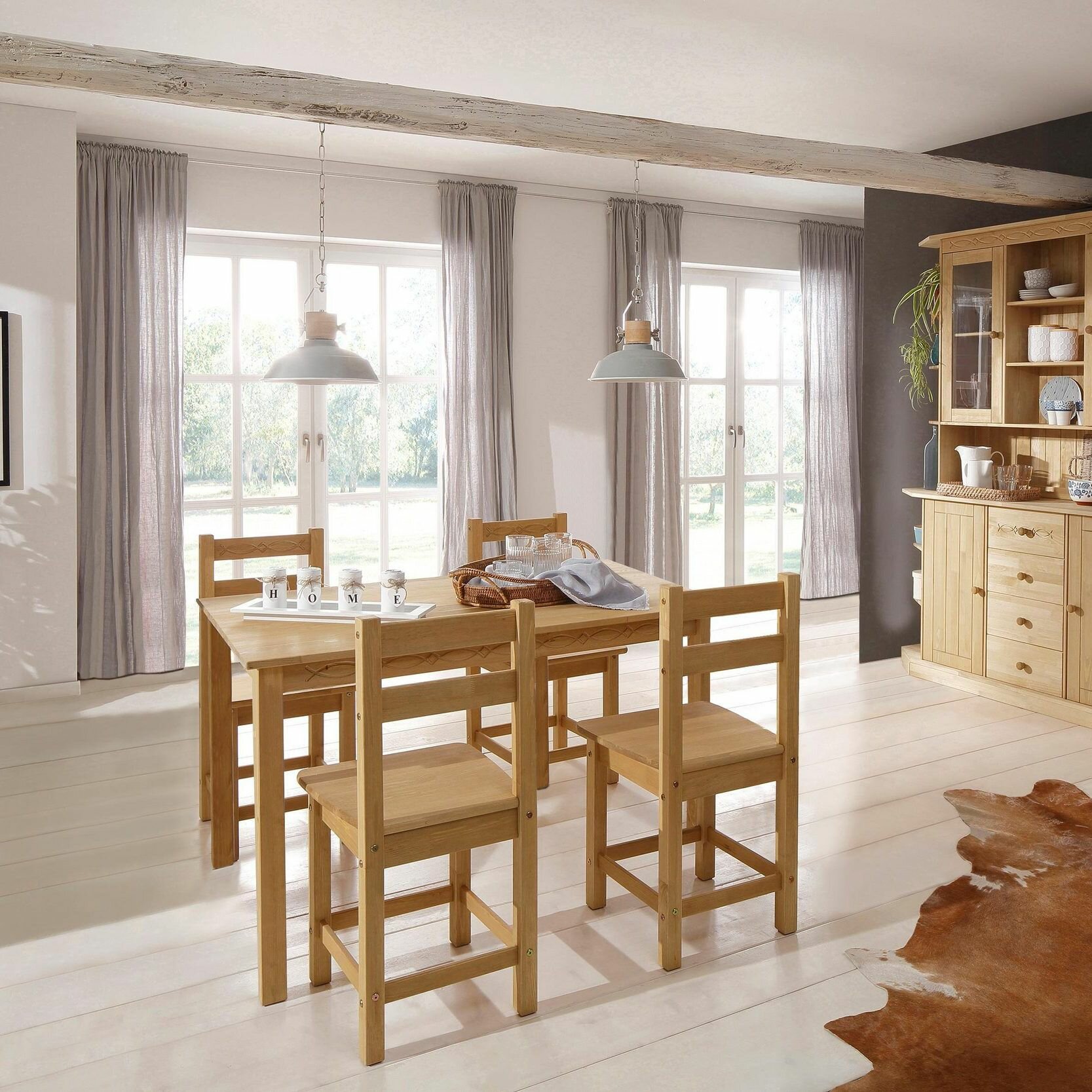 Купить Обеденная группа Индра из массива сосны, обеденный стол 120х80х75 и 4 стула 43х43х88