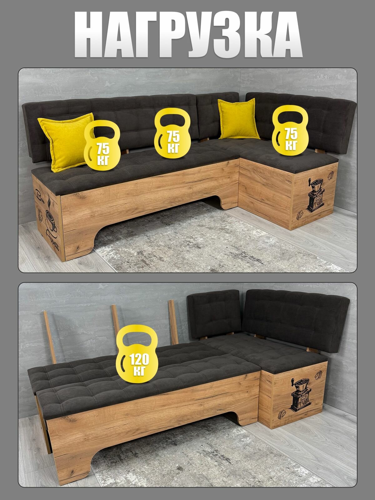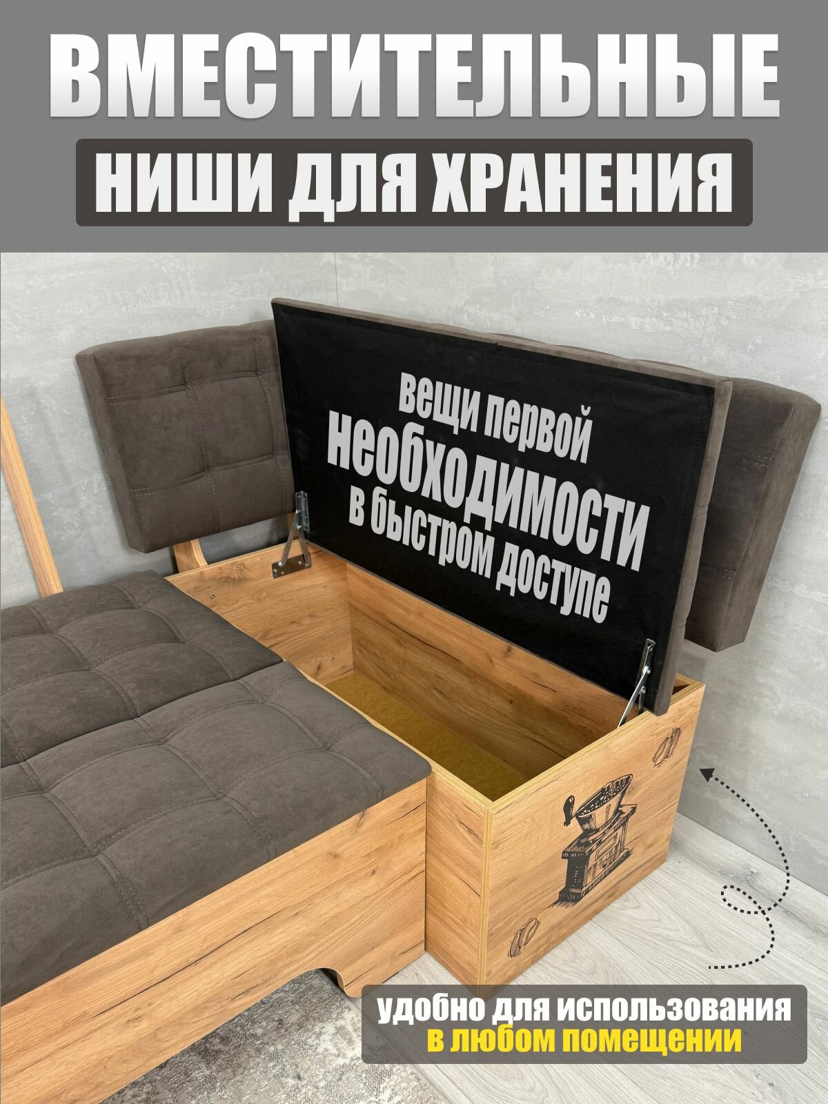 СохранитьКухонный уголок СИЭТЛ, BUDUNOV GROUP, Крафт золотой/ТК коричневый, скамья угловая со спальным местом, 194х110х82 см интересное: