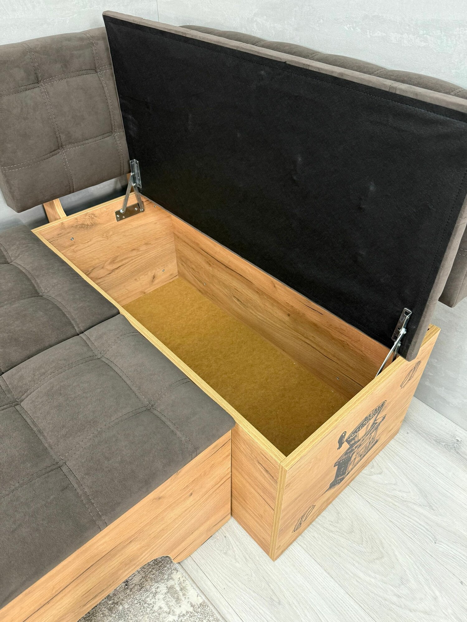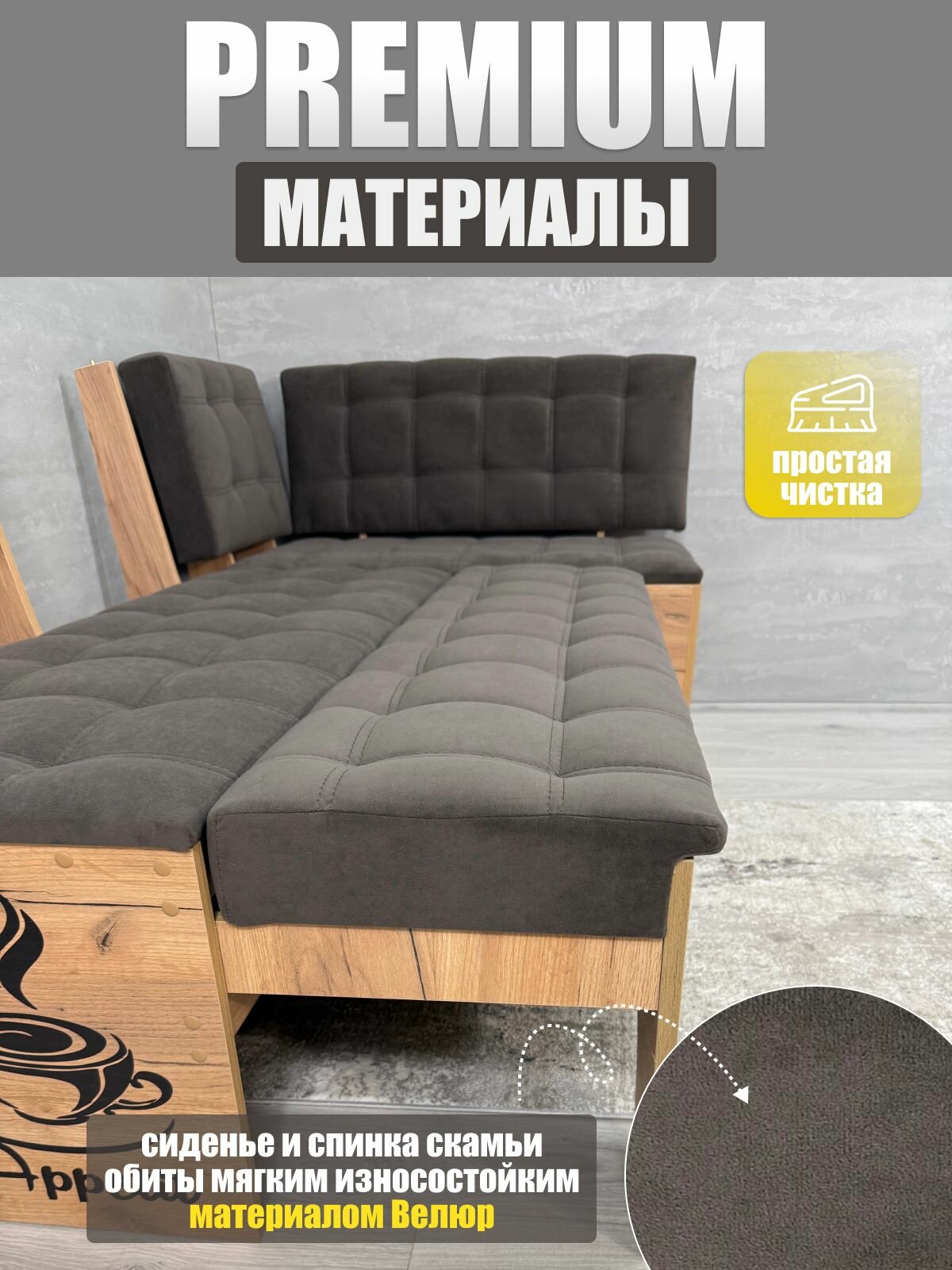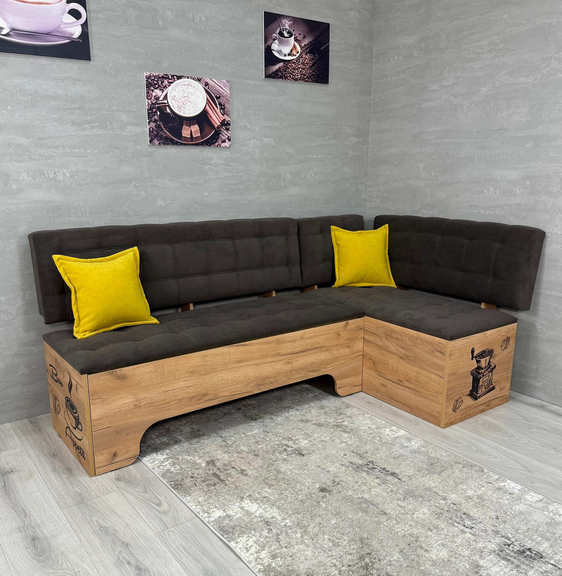 Кухонный уголок СИЭТЛ, BUDUNOV GROUP, Крафт золотой/ТК Серый, скамья угловая со спальным местом, 194х110х82 см