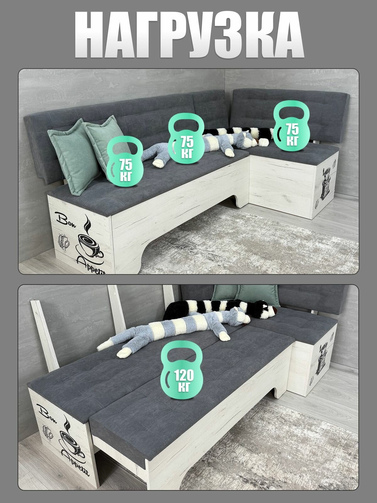 СохранитьКухонный уголок СИЭТЛ, BUDUNOV GROUP, Дуб крафт белый/ТК серый, скамья угловая со спальным местом, 194х110х82 см интересное: