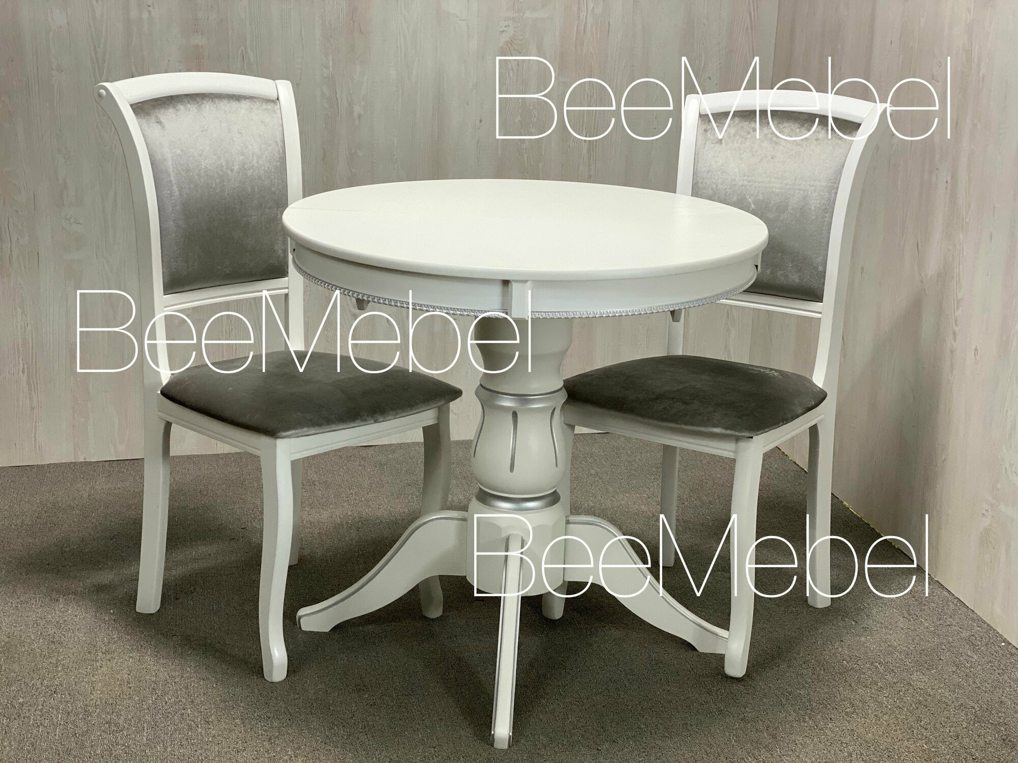 Обеденная группа, круглый стол и 2 белых стула, МДФ и массив дерева, 90х90 см интересное: