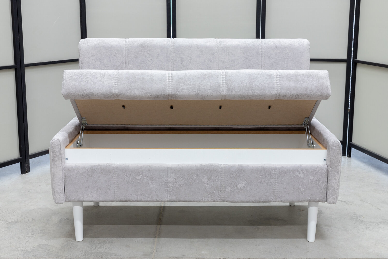 Кухонный диван Авалон с ящиком, 120х60 см, обивка моющаяся, антивандальная, антикоготь, цвет - светло-серый. интересное: