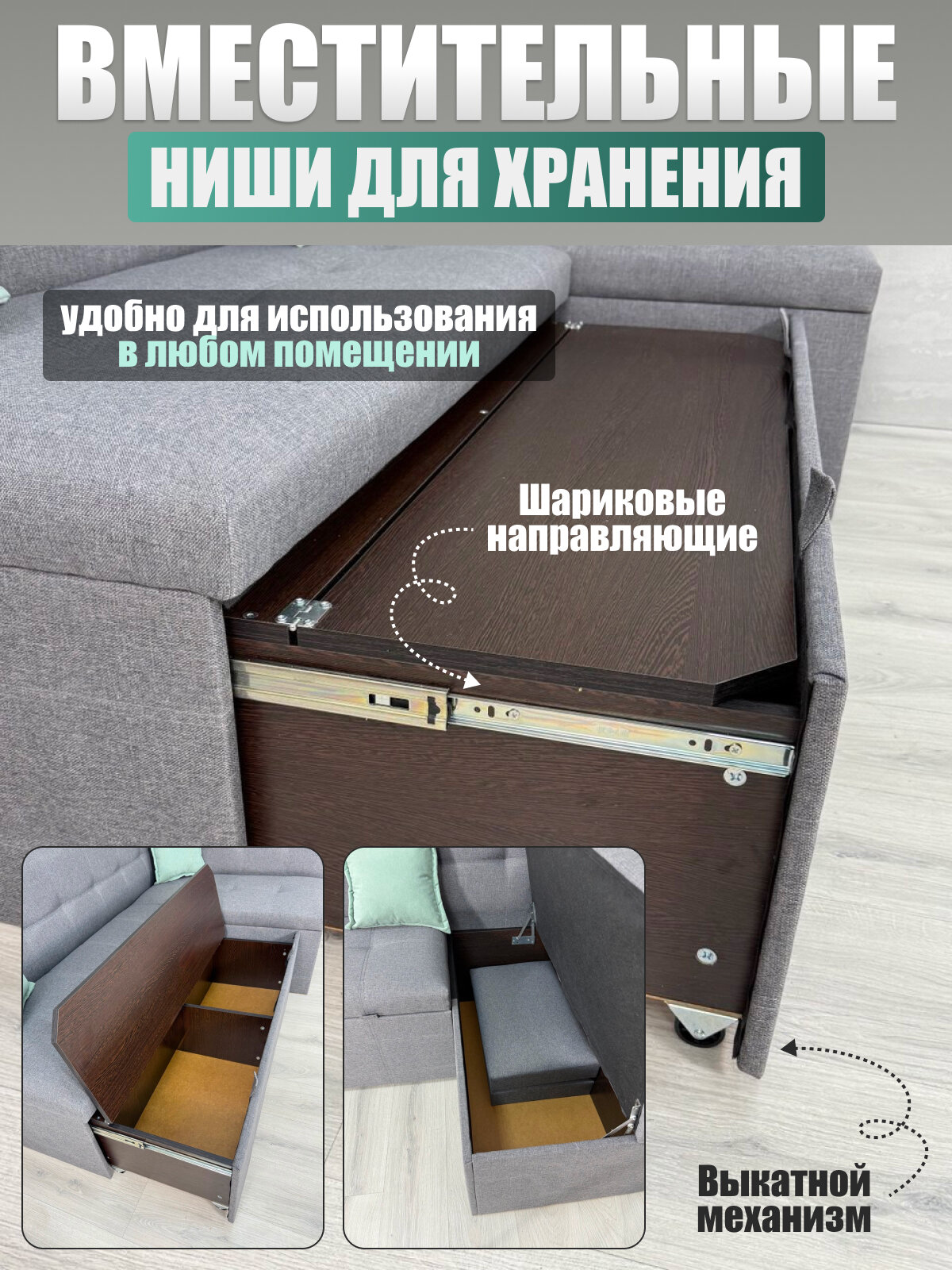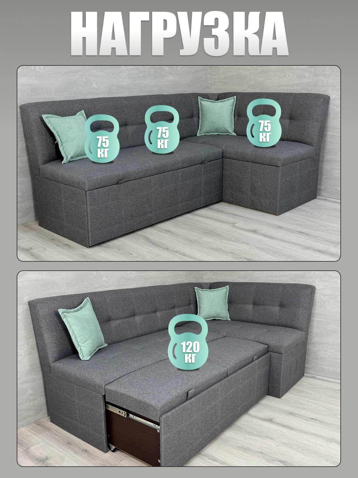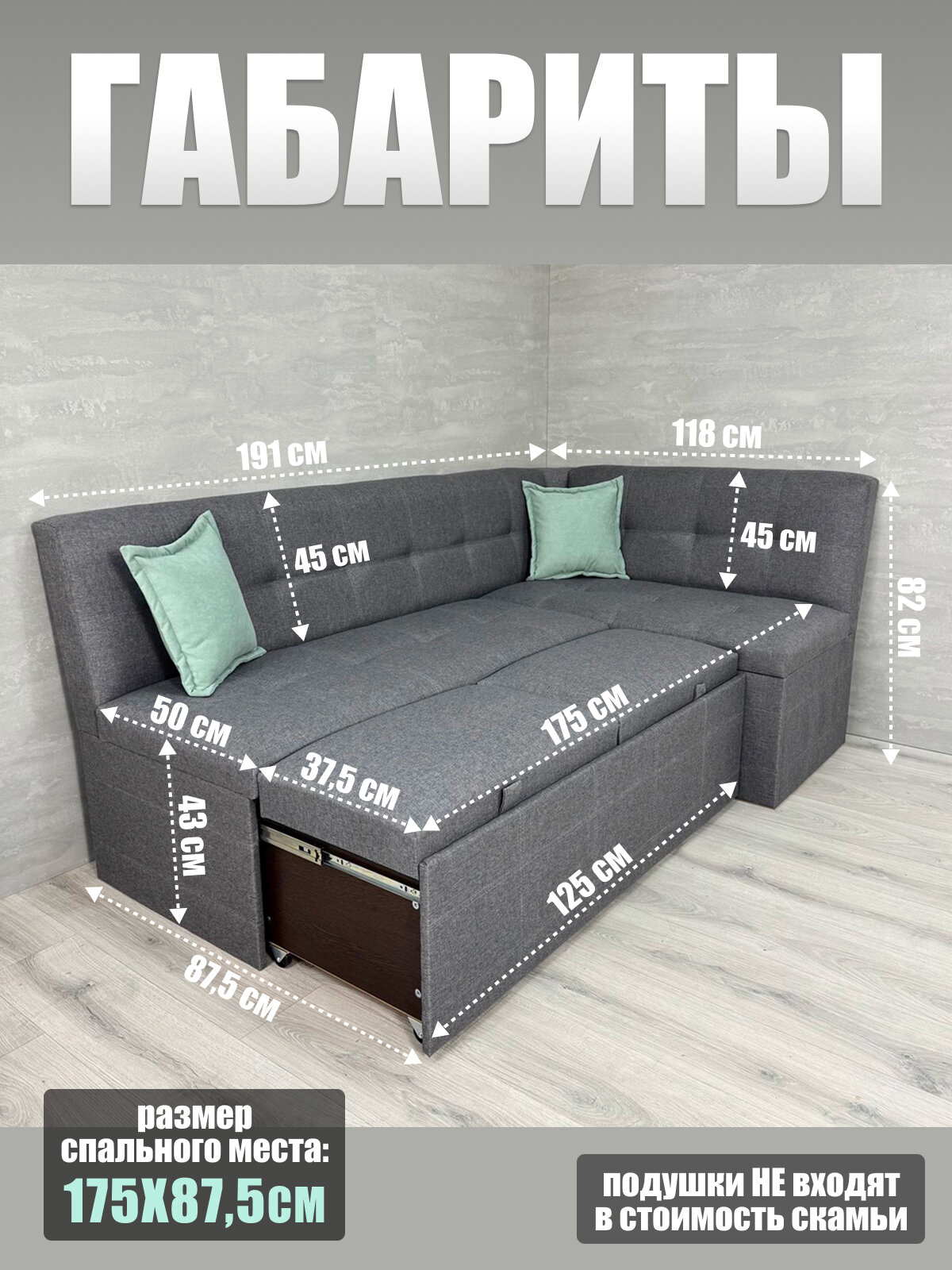 Кухонный уголок Квадро тип 1 исп 2, BUDUNOV GROUP, ТК Капри серый, скамья угловая со спальным местом, 191х118х82 см интересное:
