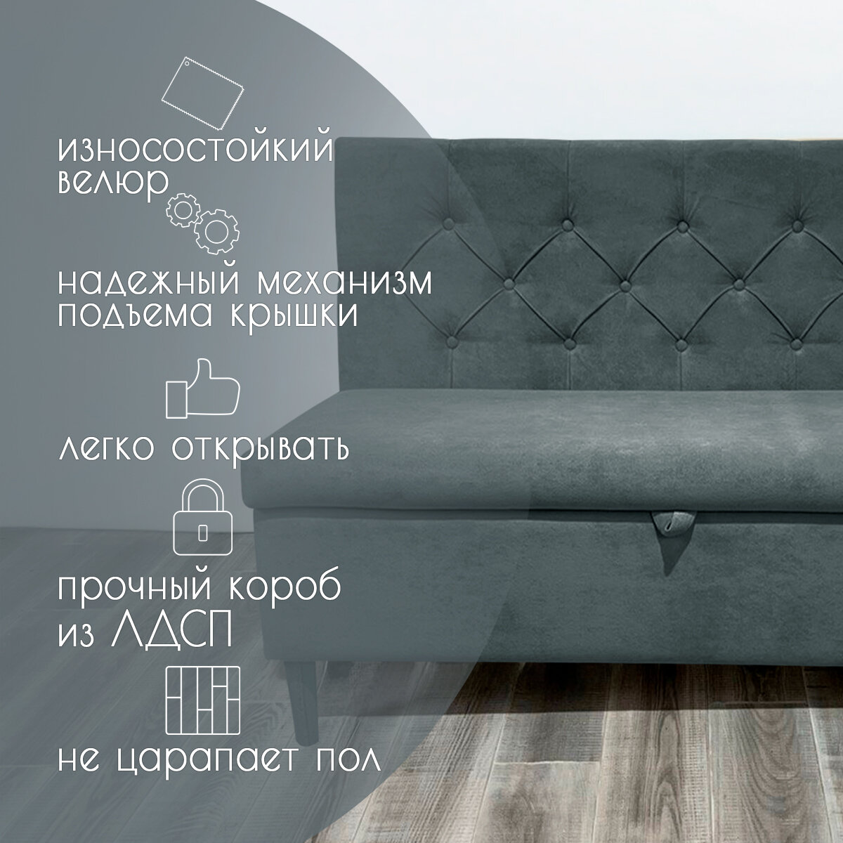 Диван на кухню "Рико" с ящиком для хранения/Велюр/Серый 120x59x85 интересное: