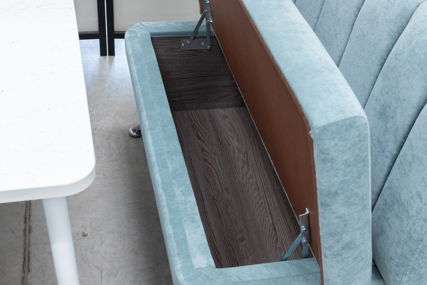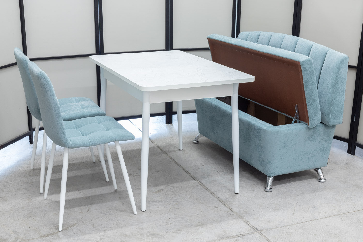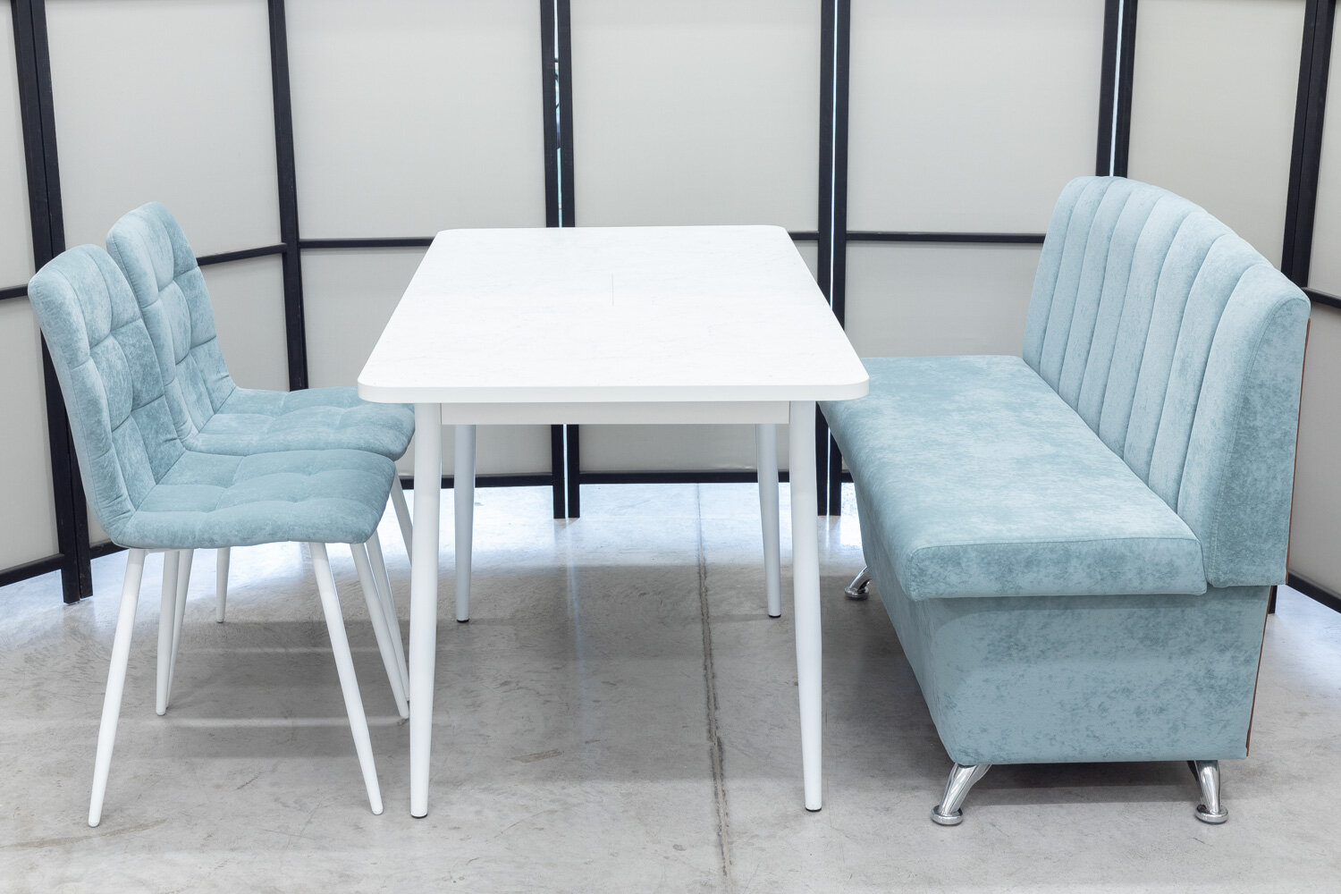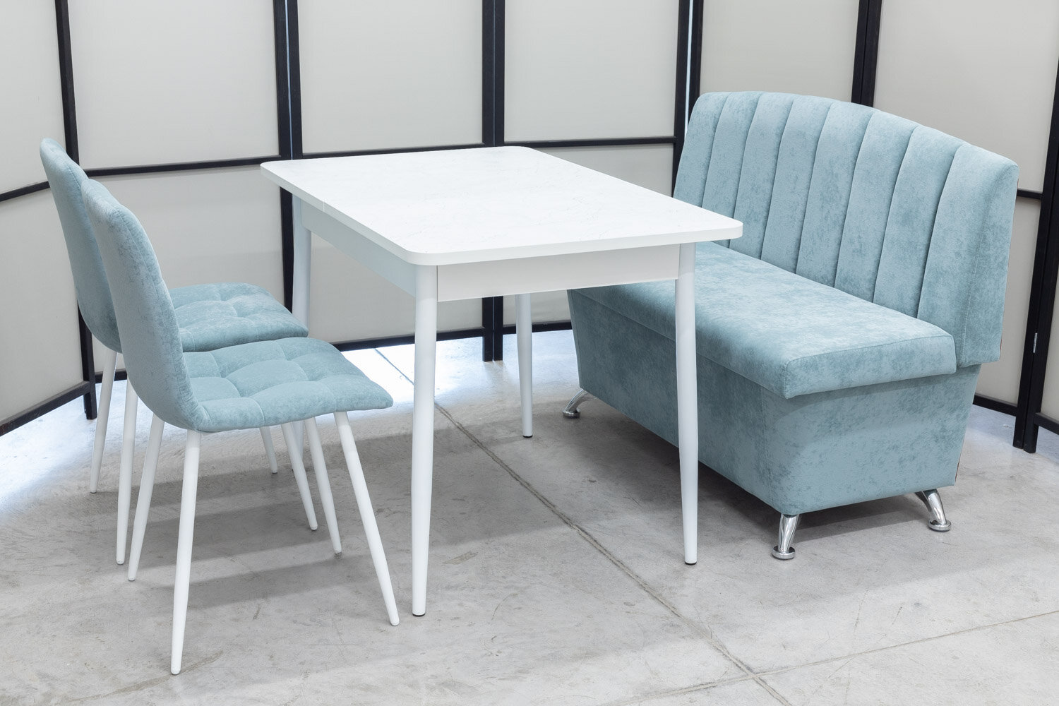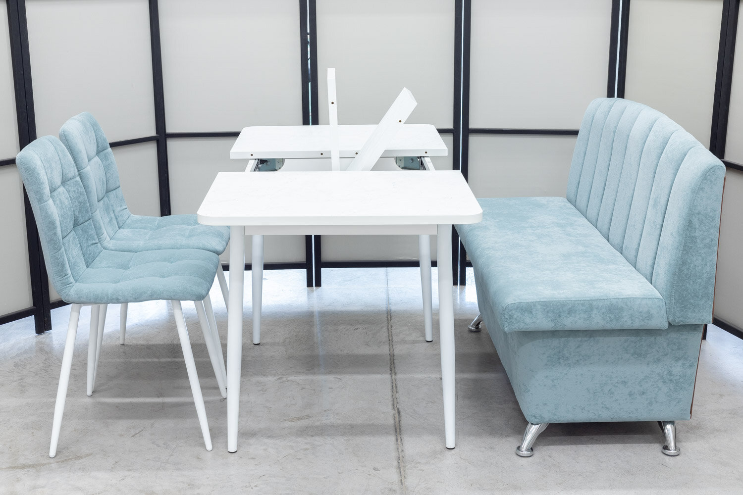 Обеденная группа Альт-3 Дуо, стол белый Ост термопластик, 110(140)х70 см, обивка дивана антивандальная, моющаяся, антикоготь, цвет ментол интересное: