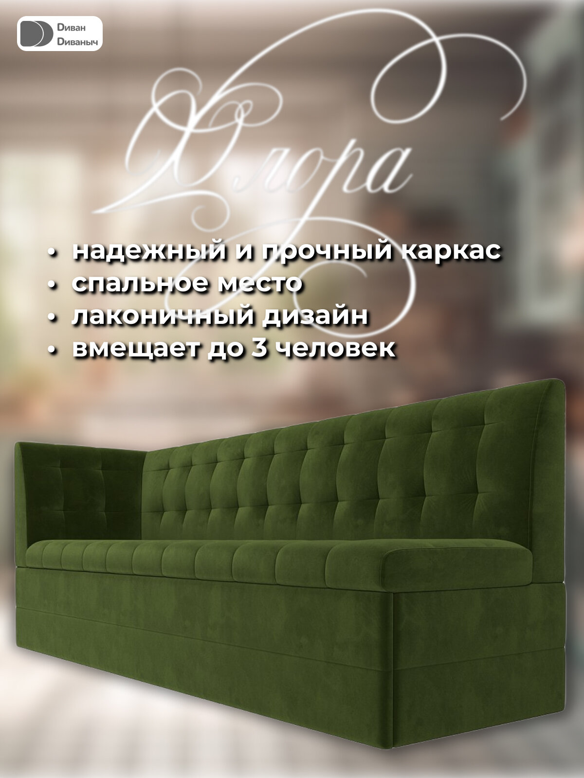 Диван кухонный Флора со спальным местом 165х96 см с углом слева, Велюр