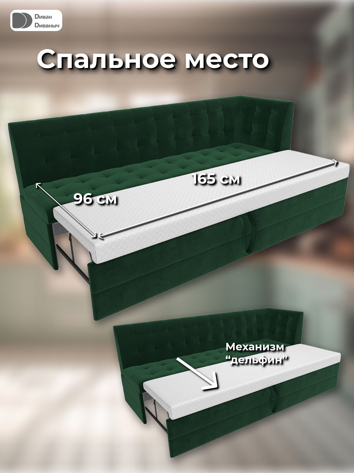 СохранитьДиван кухонный Флора со спальным местом 165х96 см с углом справа, Велюр интересное: