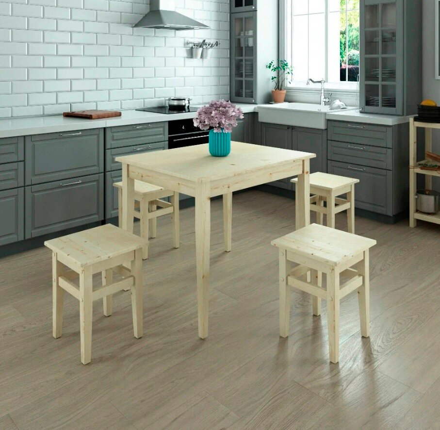Комплект кухонной мебели Ингу (стол 75х75 и 4 табуретки) обеденная группа, массив сосны интересное: