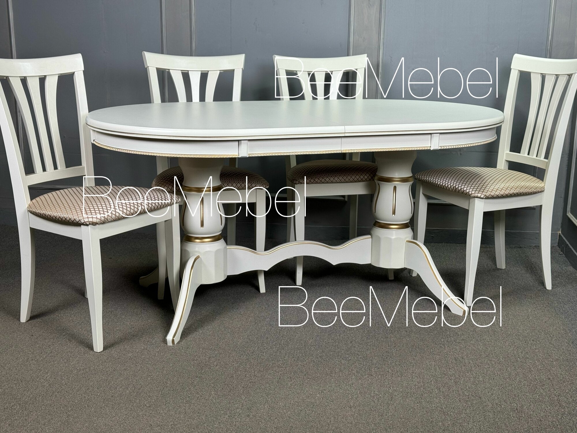 Обеденная группа, стол на двух ножках овальный 160 и 4 стула интересное: