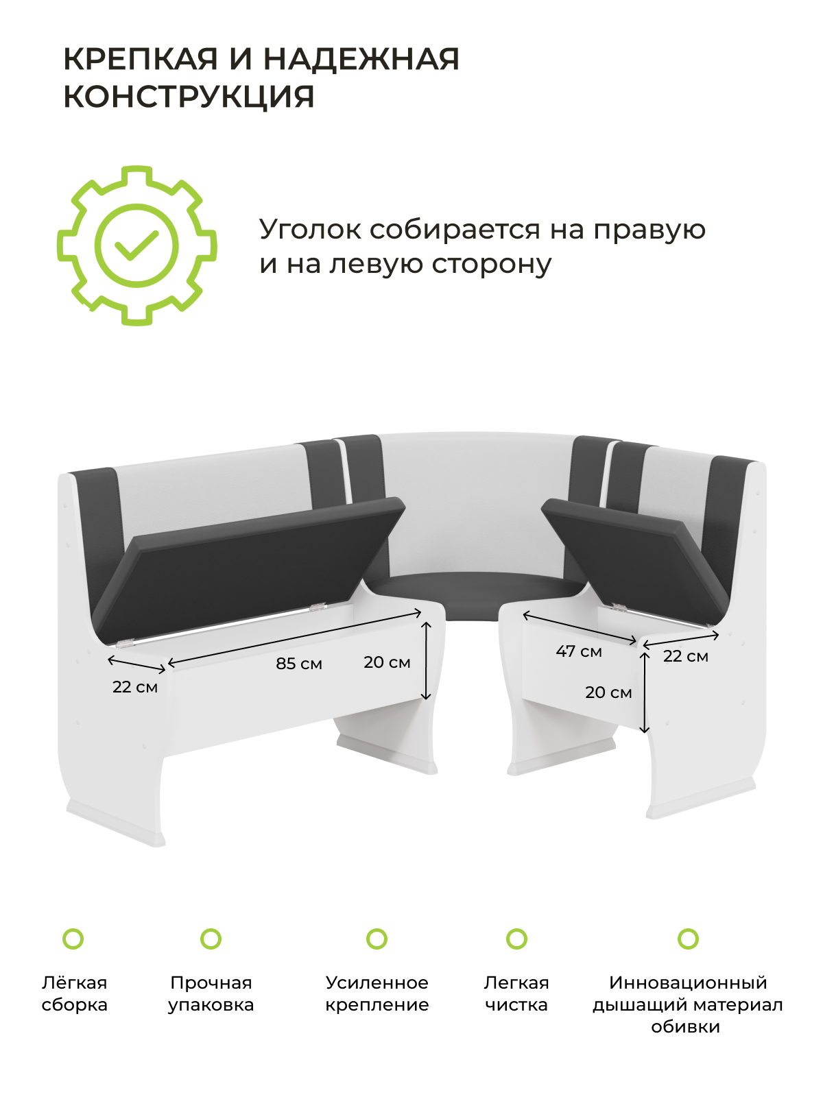 Скамья угловая Фиеро тип 2, Белый/ ТК серый mocco-темно серый graphite , 110х150х85 кухонный уголок
