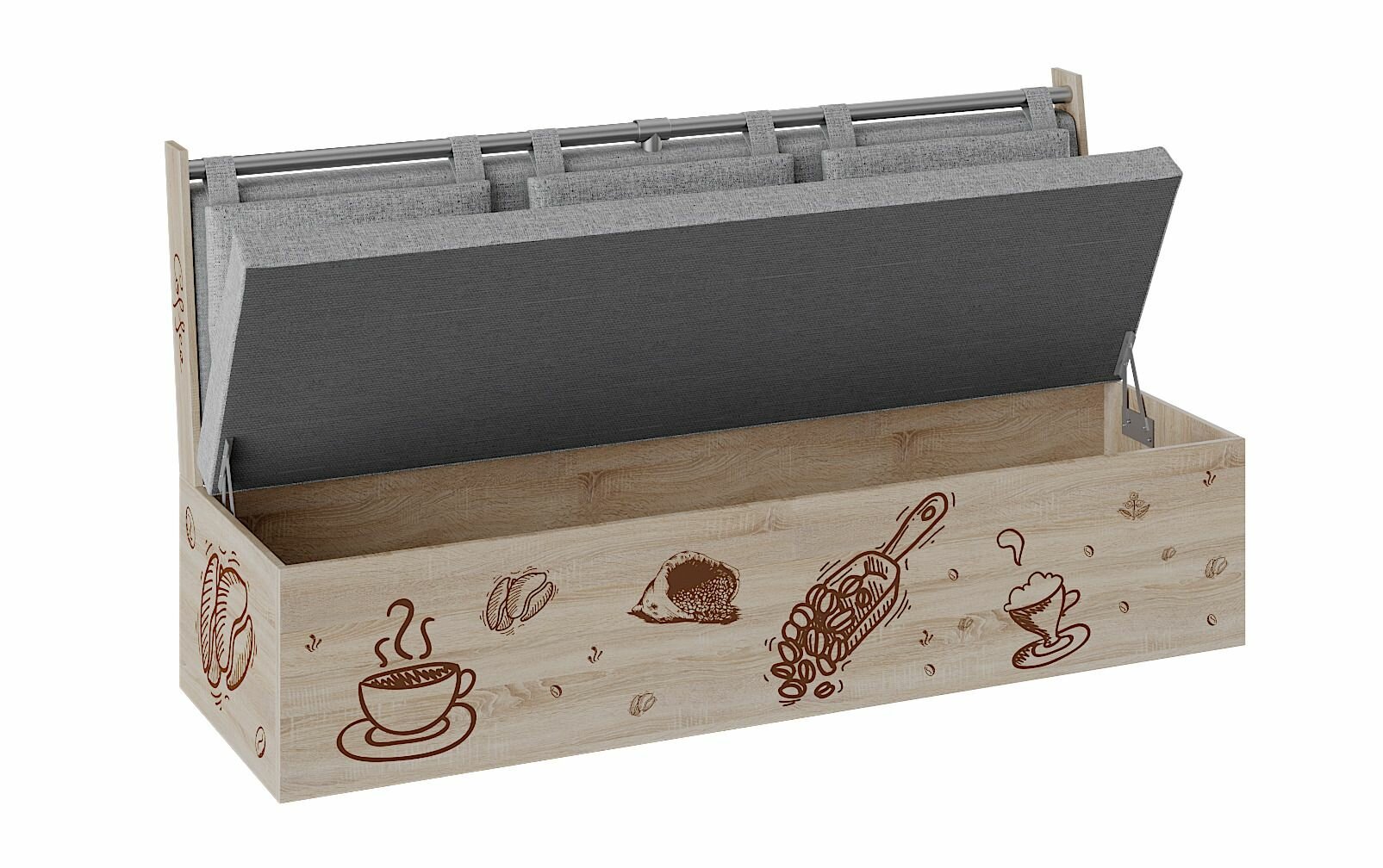 Скамья прямая Роденго, BUDUNOV GROUP, Дуб Сонома трюфель/ТК Рогожка серая, скамья с ящиком для хранения, 150х59х88 см