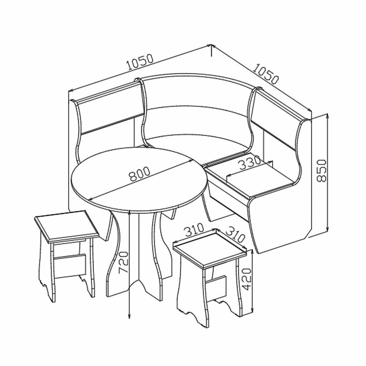 Кухонный уголок Успех-1, Дуб молочный и Венге, 110x110 см, 4 предмета