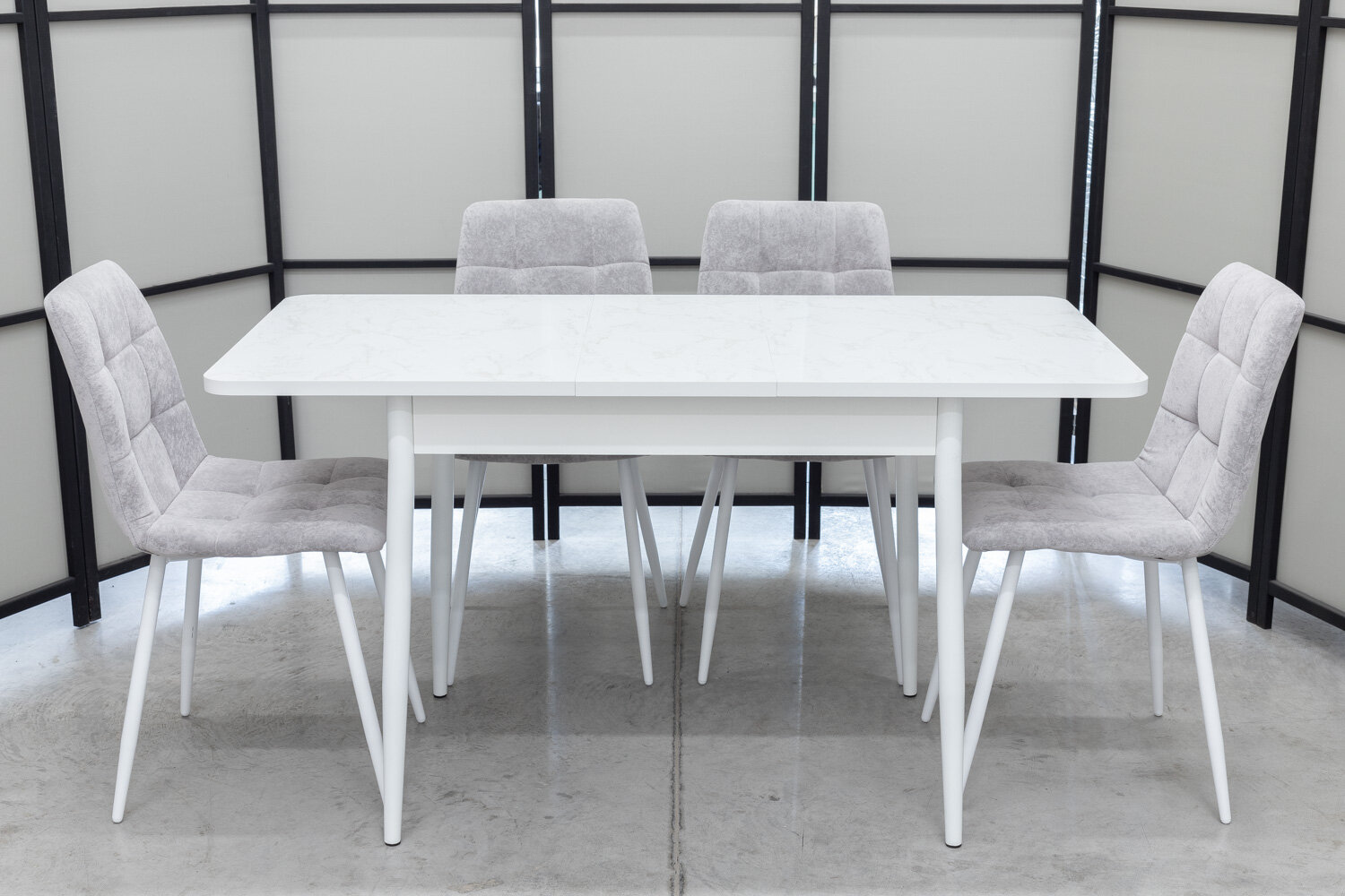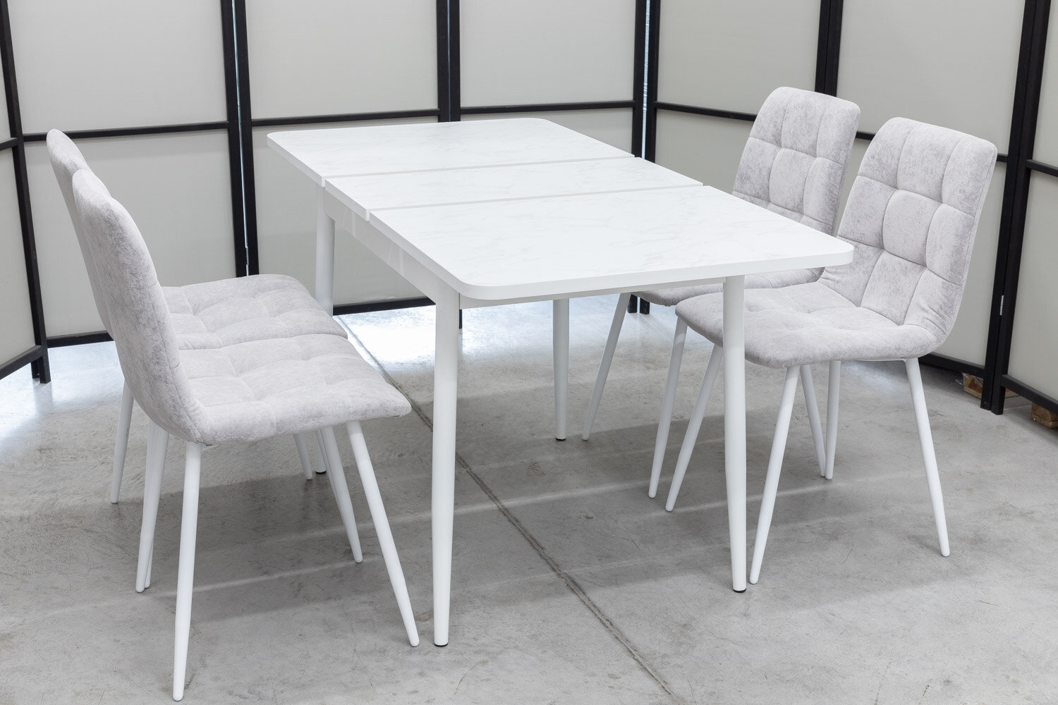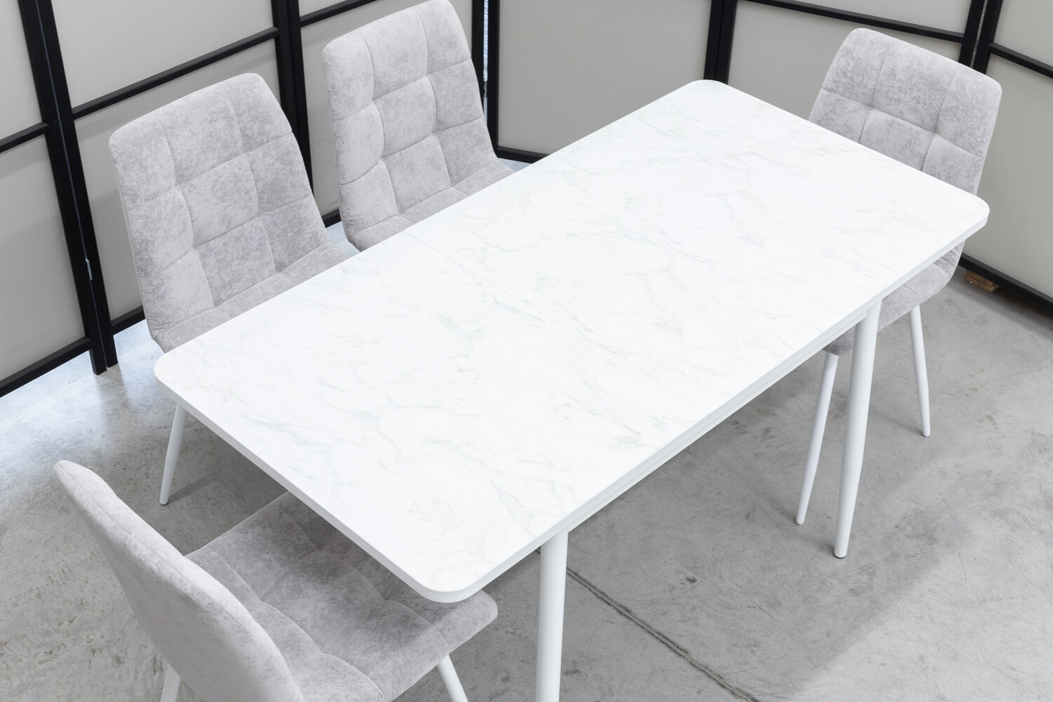 Купить Обеденная группа Ост Кватро, стол белый термопластик, 110(140)х70 см, обивка стульев антивандальная, моющаяся, антикоготь, цвет светло-серый