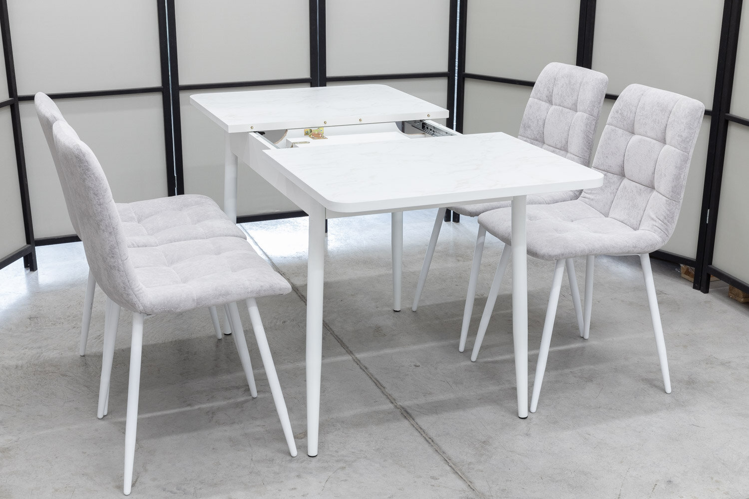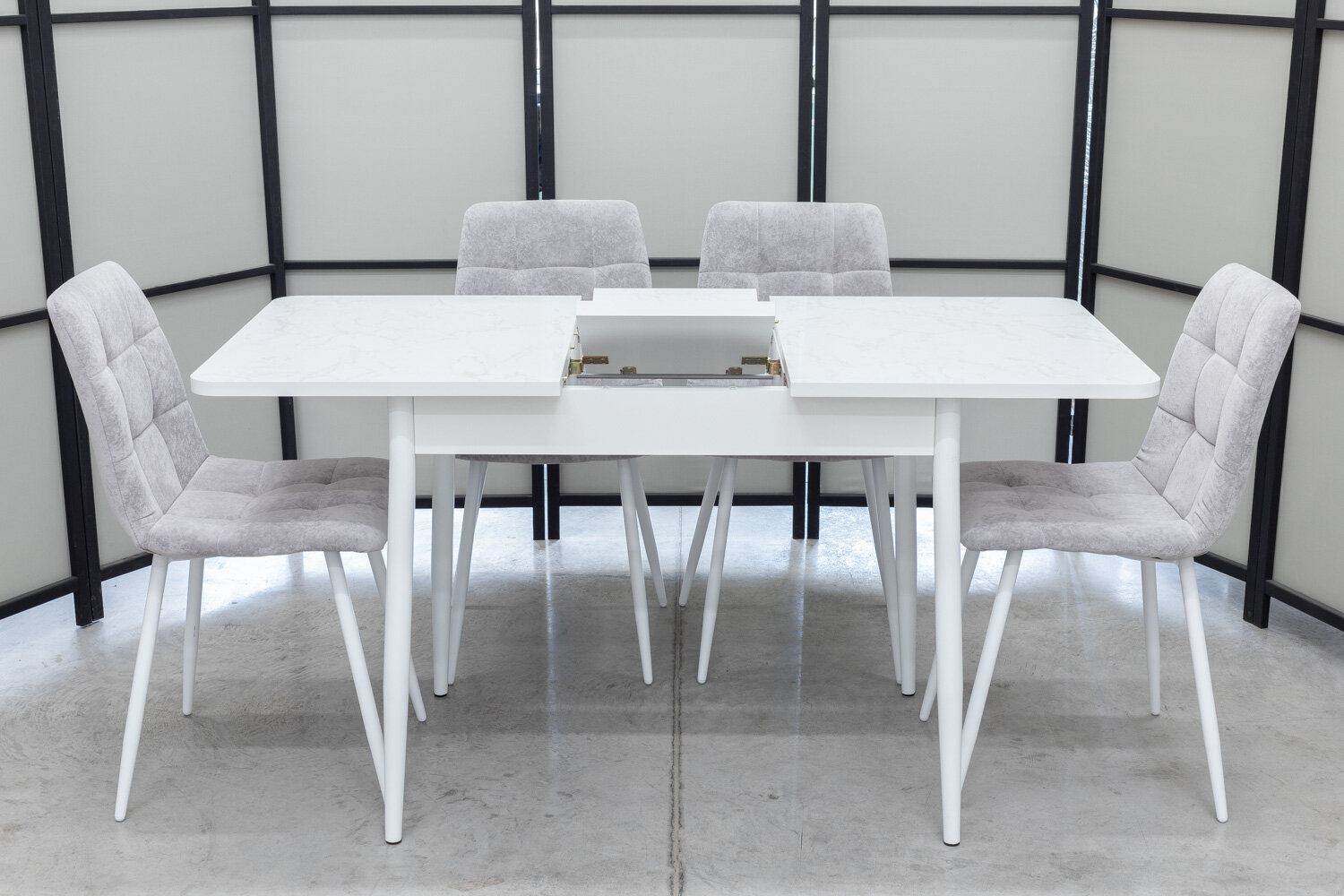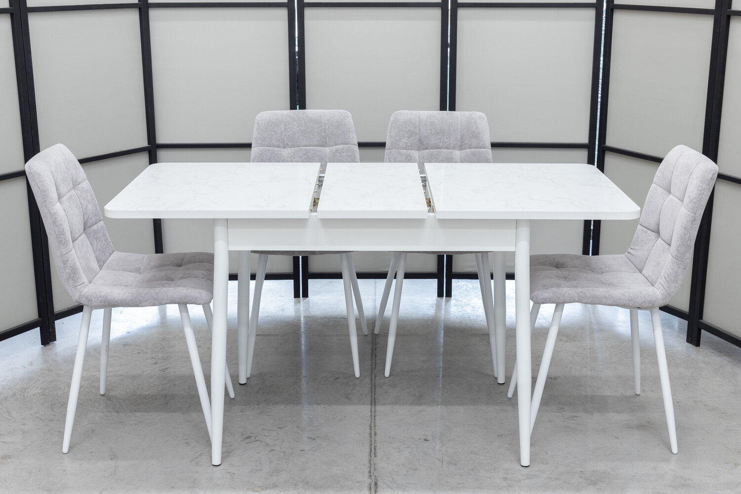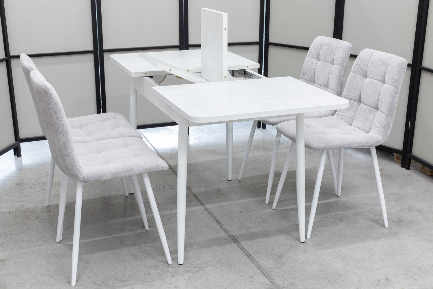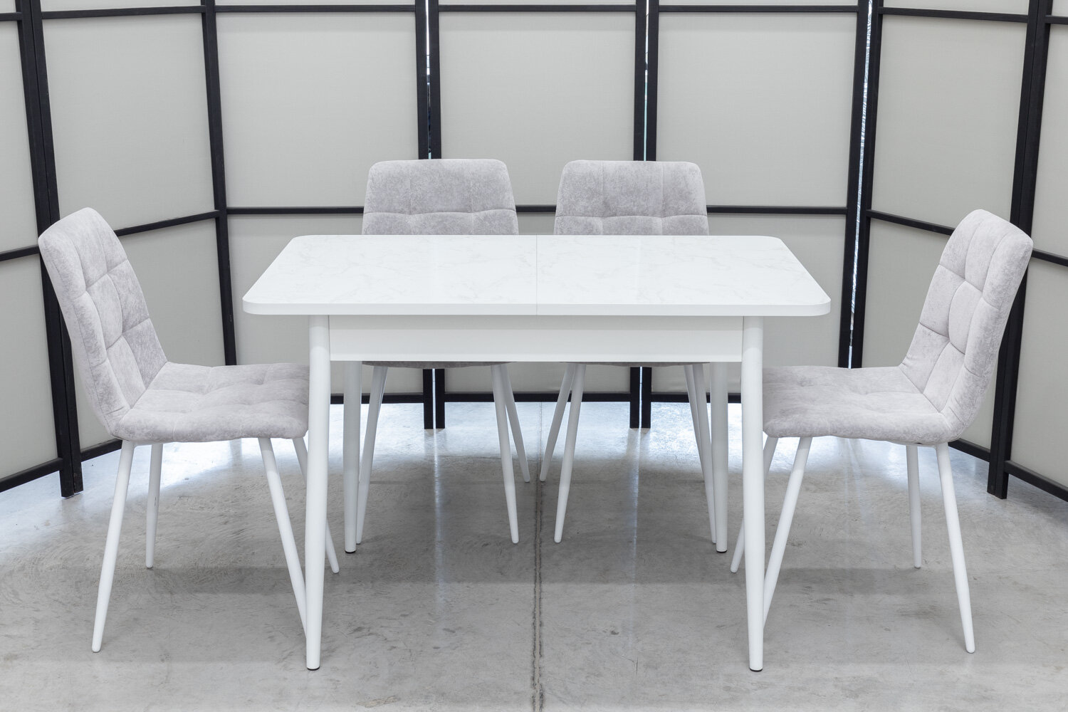 Обеденная группа Ост Кватро, стол белый термопластик, 110(140)х70 см, обивка стульев антивандальная, моющаяся, антикоготь, цвет светло-серый интересное: