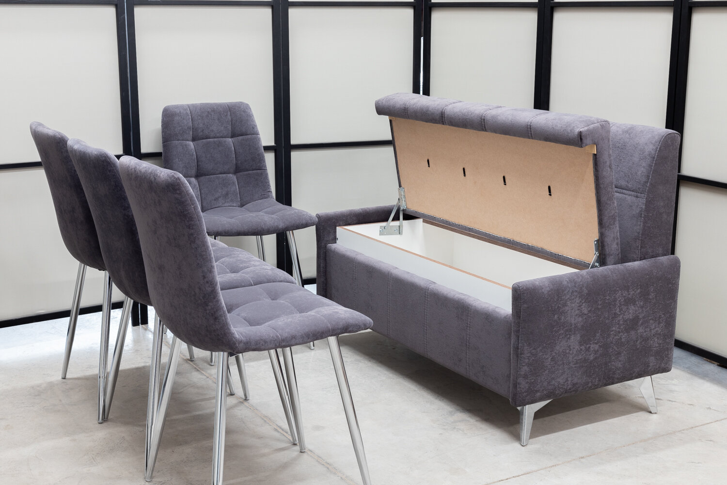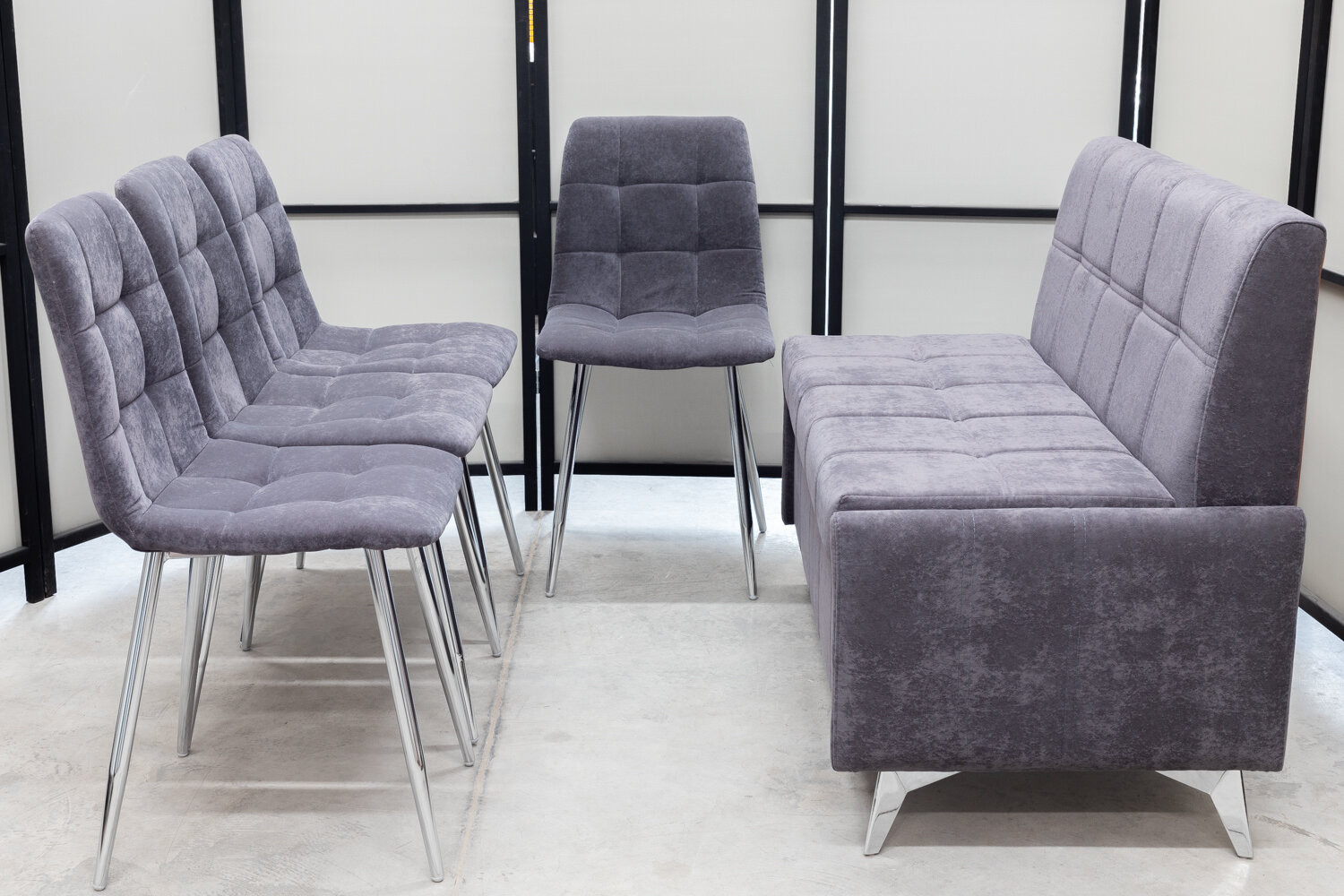 Кухонный диван Авалон со стульями (4 шт.), 120х56 см, обивка моющаяся, антивандальная, антикоготь, цвет - графит. интересное: