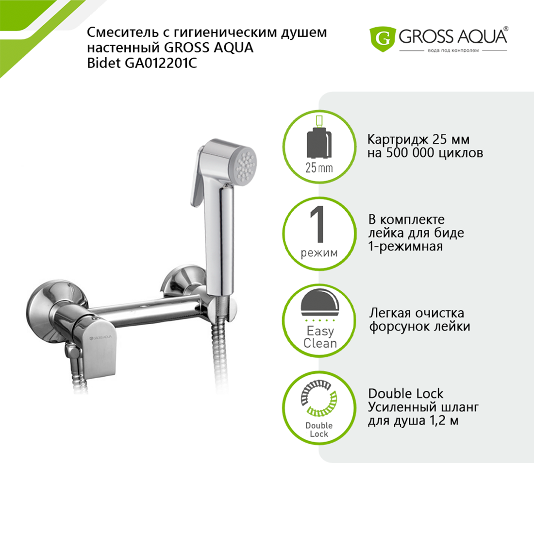 Смеситель с гигиеническим душем настенный GROSS AQUA Bidet, латунь, хром, GA012201C. интересное: