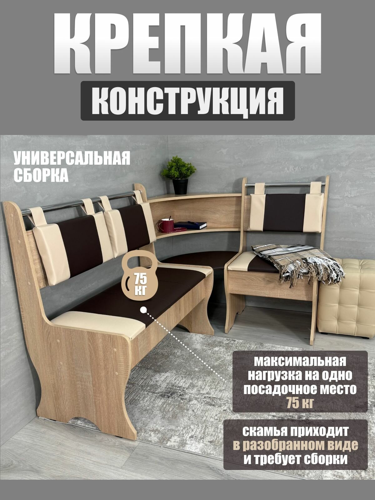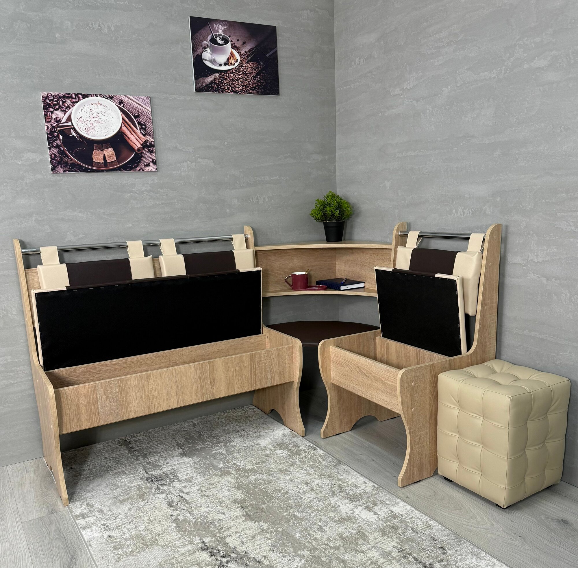 Кухонный уголок Дельта, BUDUNOV GROUP, Дуб сонома/КЗ коричневый/беж, скамья угловая с нишами, 152х104х90,5 см интересное: