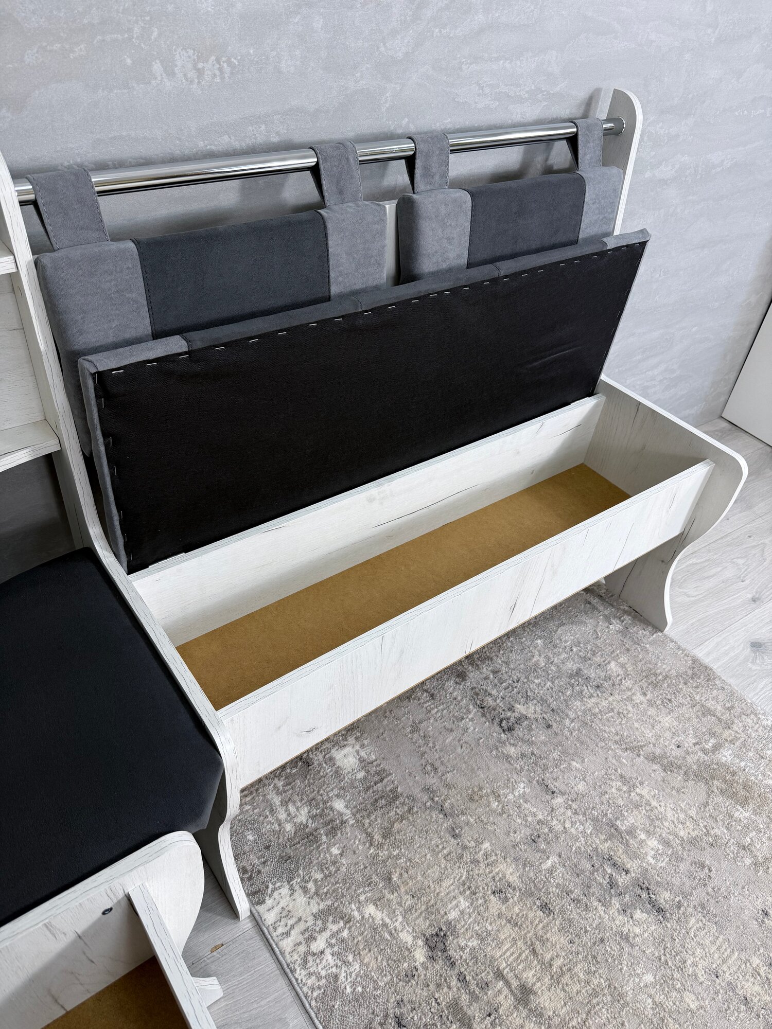 Кухонный уголок Дельта, BUDUNOV GROUP, Крафт белый ТК темно-серый/серый, скамья угловая с нишами, 152х104х90,5 см интересное: