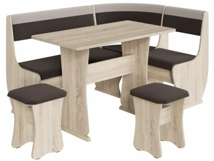 Кухонный уголок Уют тип 1, BUDUNOV GROUP, Дуб сонома/КЗ шоколад/беж, уголок со столом и табуретами, 155х115х85 см