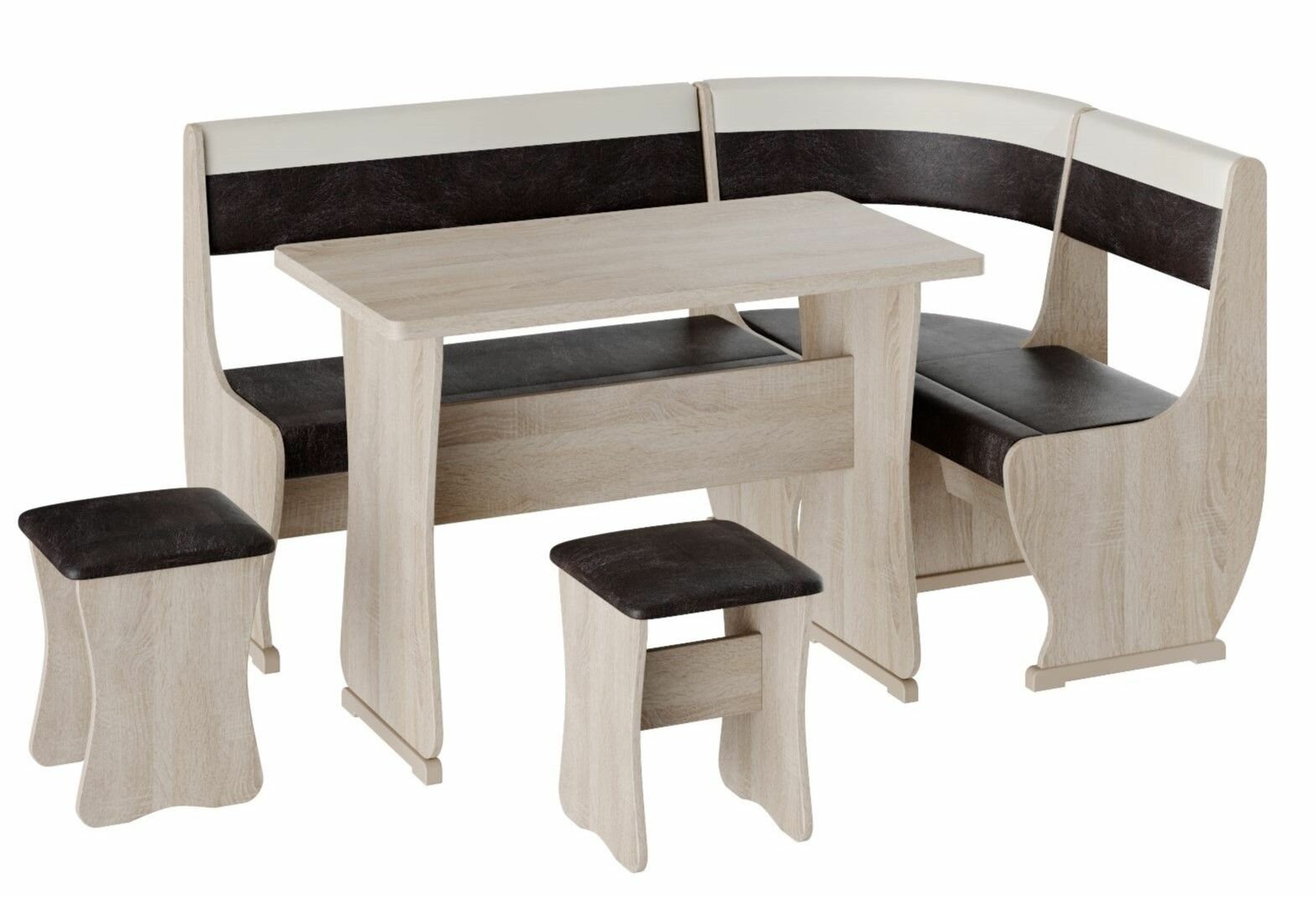 СохранитьКухонный уголок Уют тип 1, BUDUNOV GROUP, Дуб сонома/КЗ шоколад/беж, уголок со столом и табуретами, 155х115х85 см интересное: