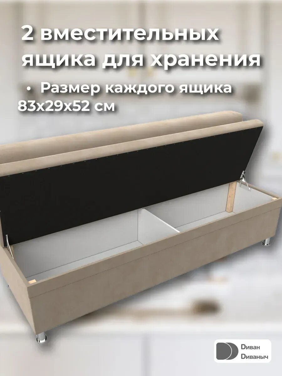 Диван кухонный прямой Каскад с двумя ящиками для хранения, Велюр интересное: