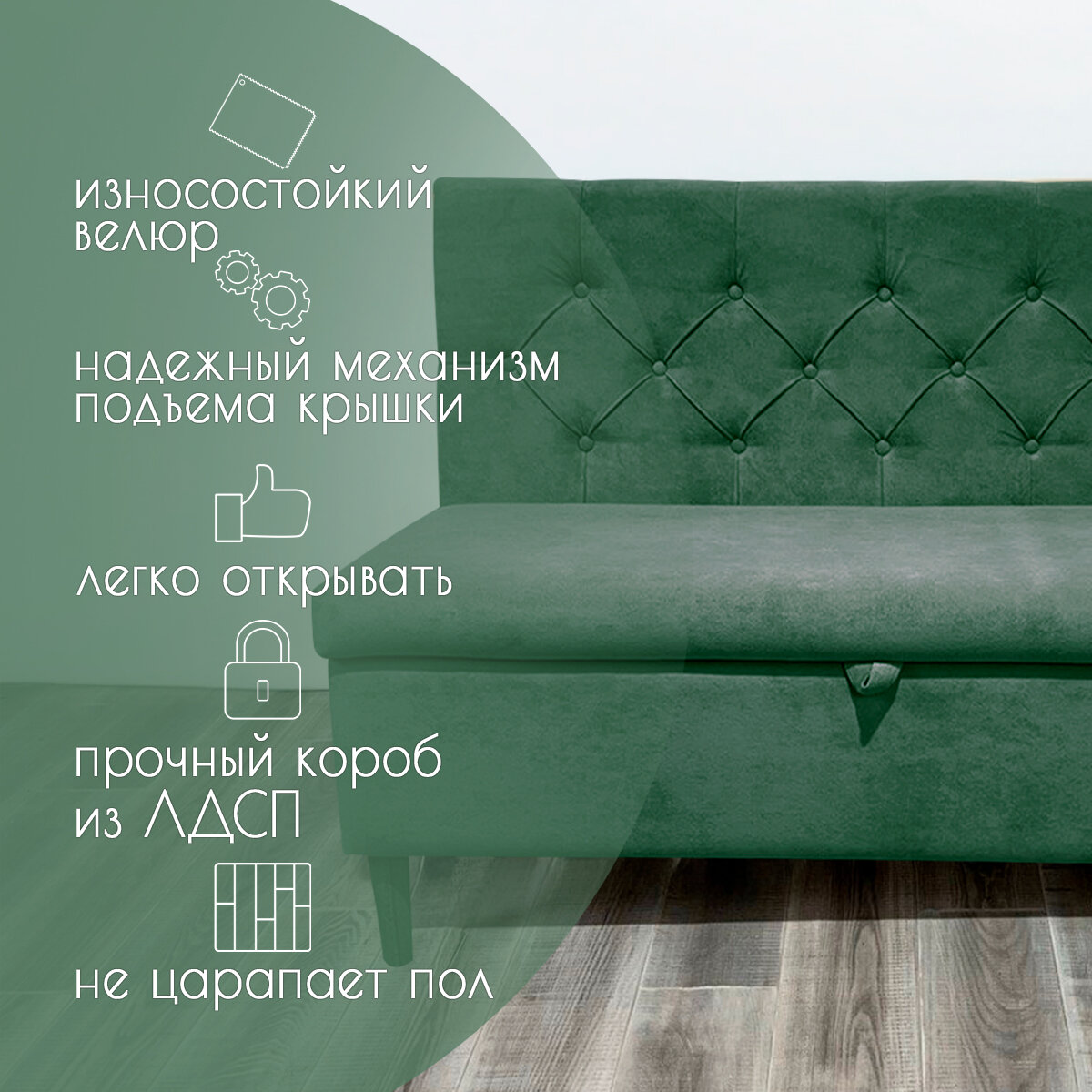 Купить Диван на кухню "Рико" с ящиком для хранения/Велюр/Зеленый 120x59x85