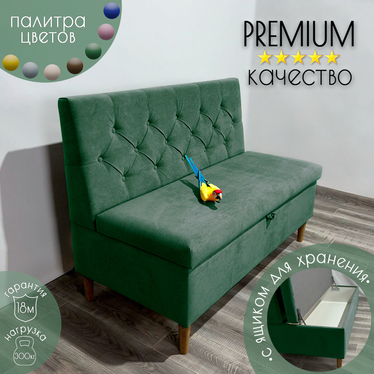 Ниже Вы можете прочитать отзывы на Диван на кухню "Рико" с ящиком для хранения/Велюр/Зеленый 120x59x85, ознакомится с подробными характеристиками, посмотреть интересные обзоры и фотографии на Диван на кухню "Рико" с ящиком для хранения/Велюр/Зеленый 120x59x85.