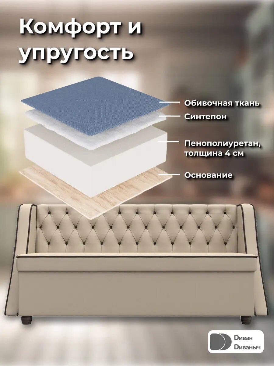 Диван кухонный прямой Милана с двумя ящиками для хранения, Экокожа интересное: