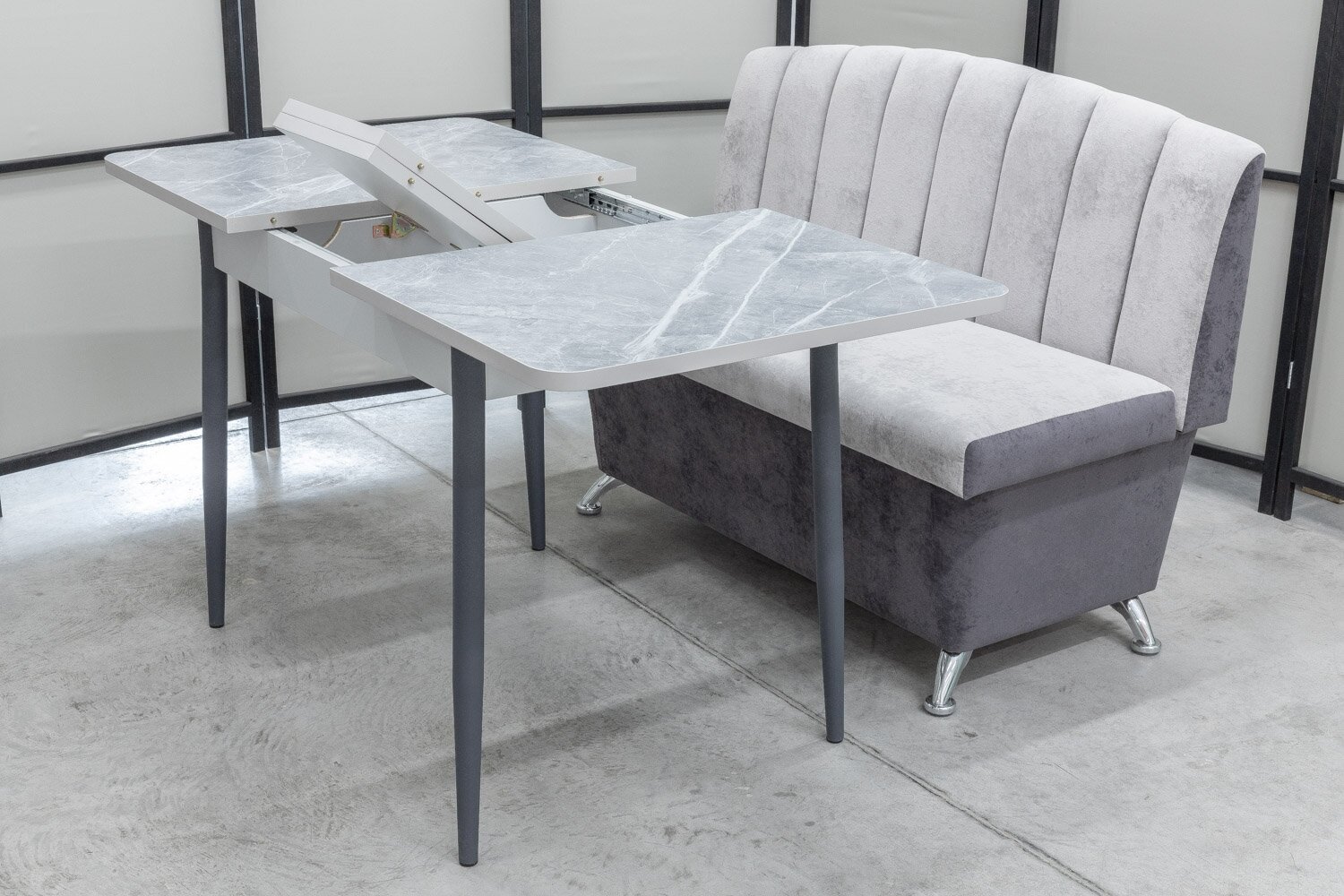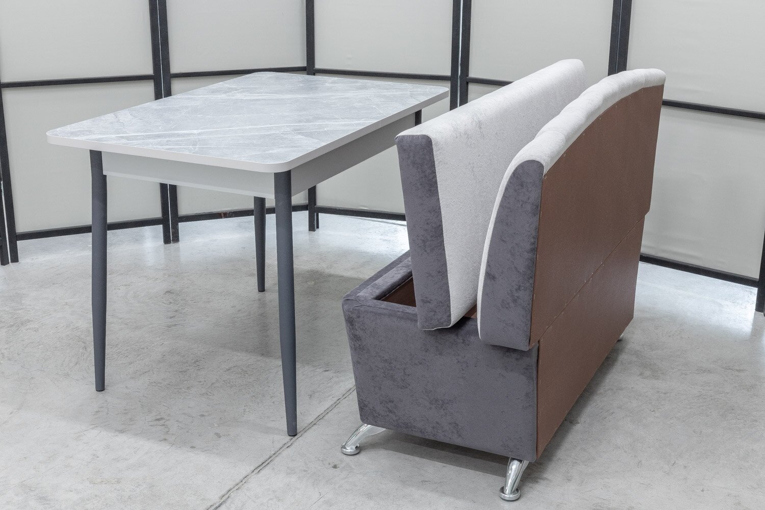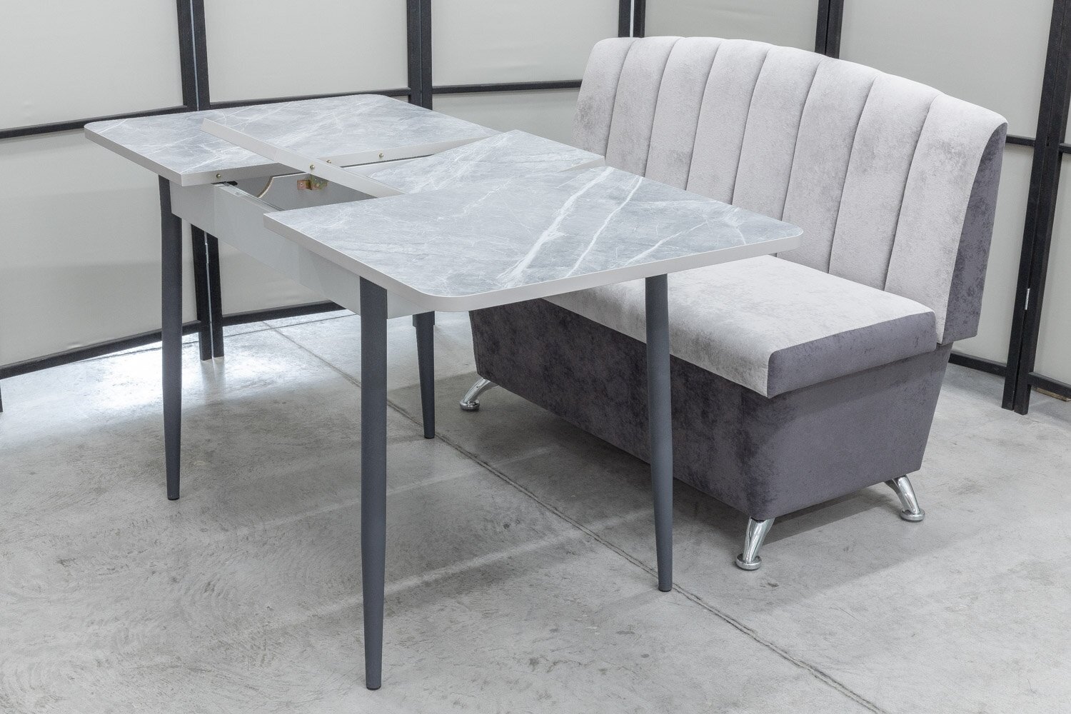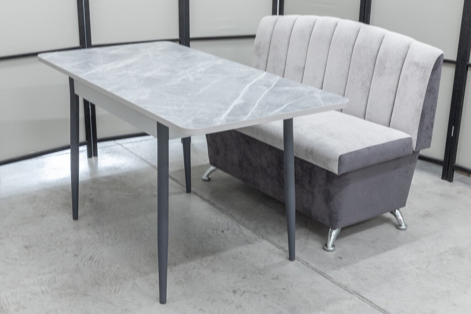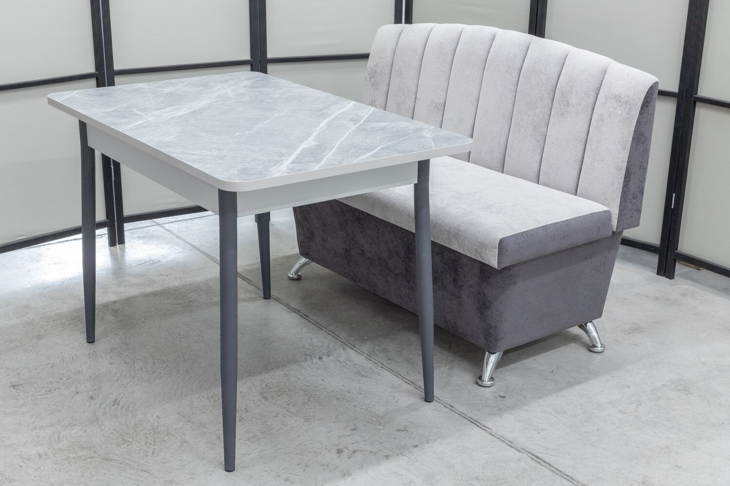 Обеденная группа Альт-1, стол Ост термопластик, 110(140)х70 см, обивка дивана антивандальная, моющаяся, антикоготь, цвет светло-серый интересное: