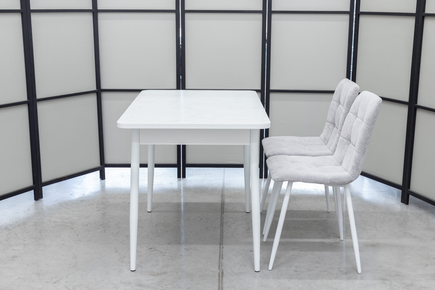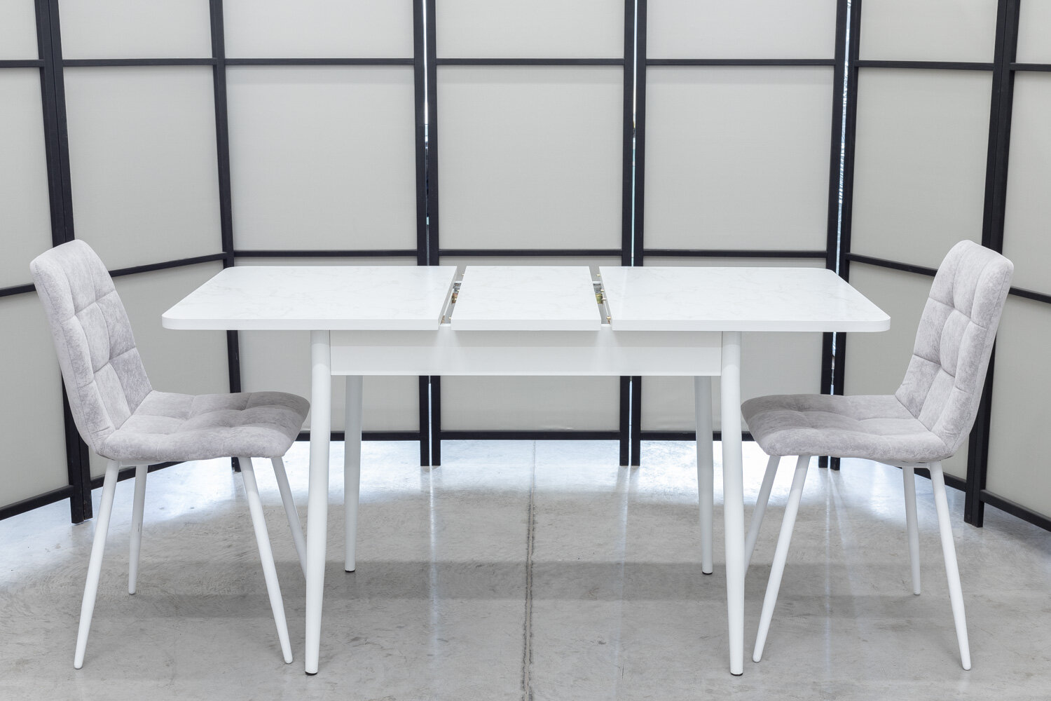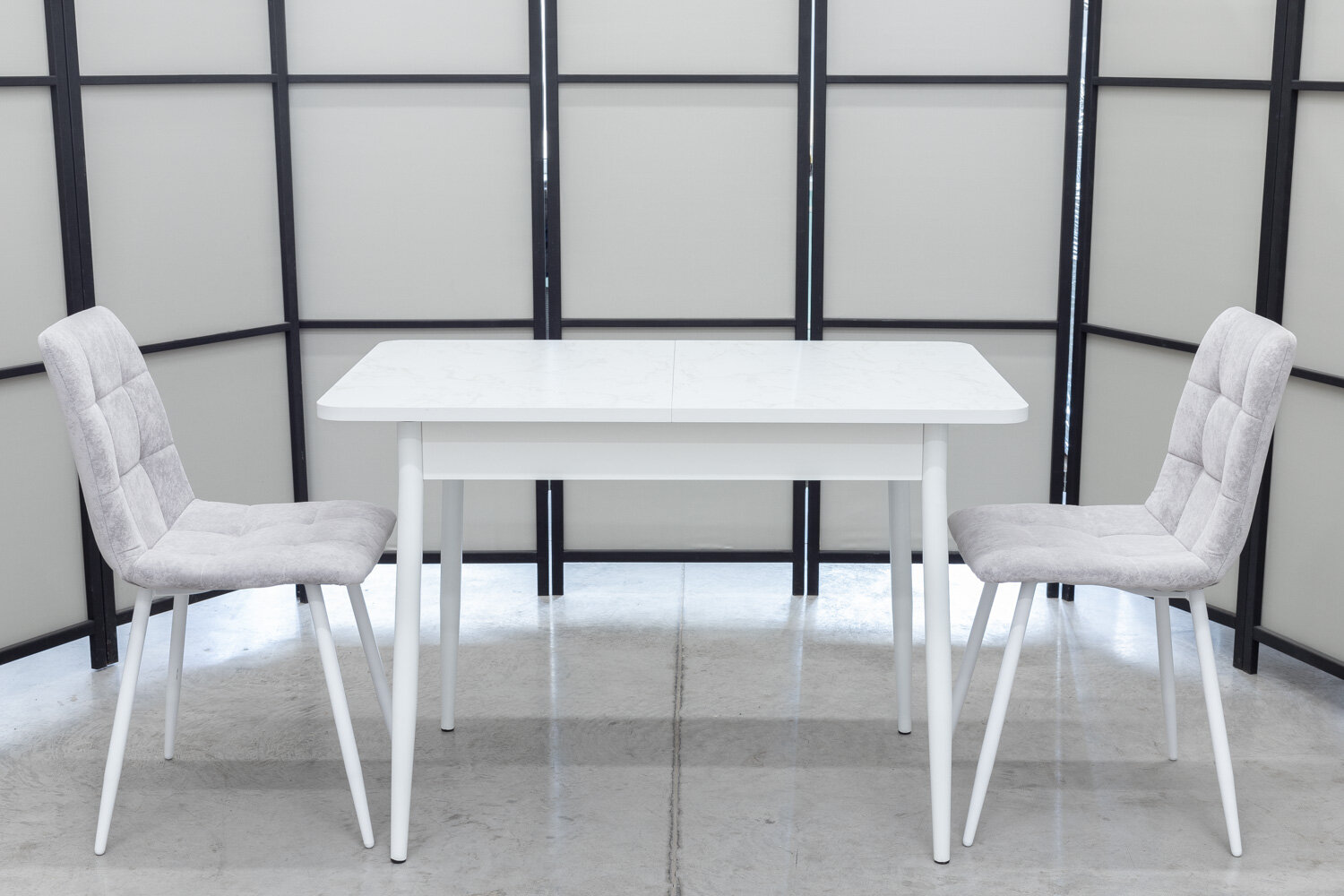 Обеденная группа Ост Дуо, стол белый термопластик, 110(140)х70 см, обивка стульев антивандальная, моющаяся, антикоготь, цвет светло-серый интересное:
