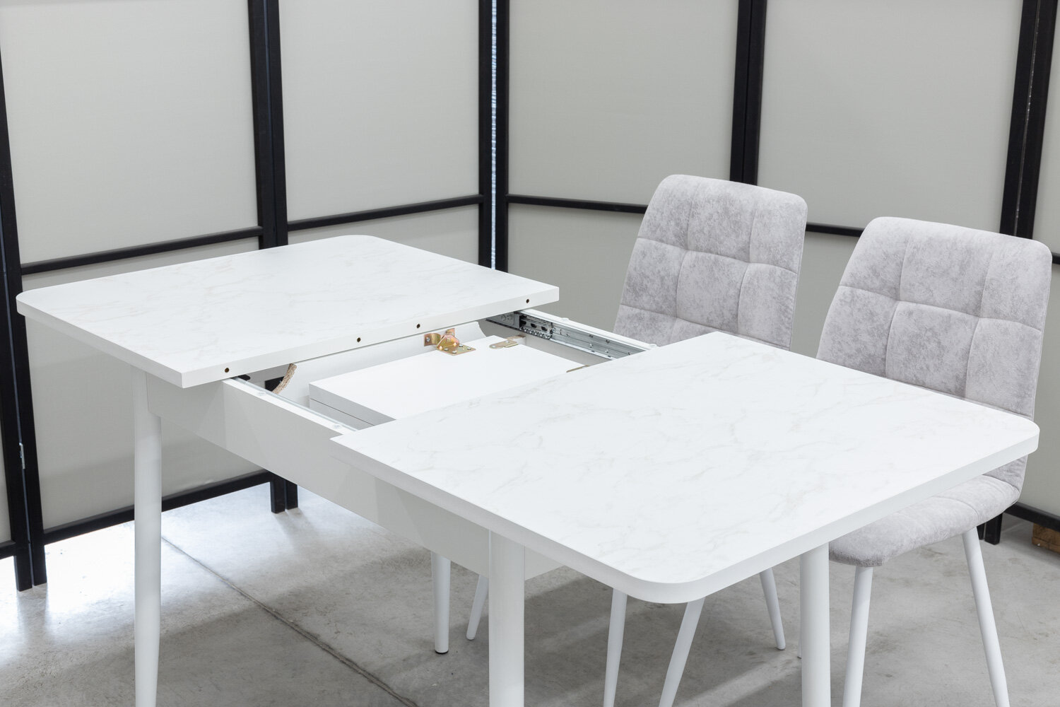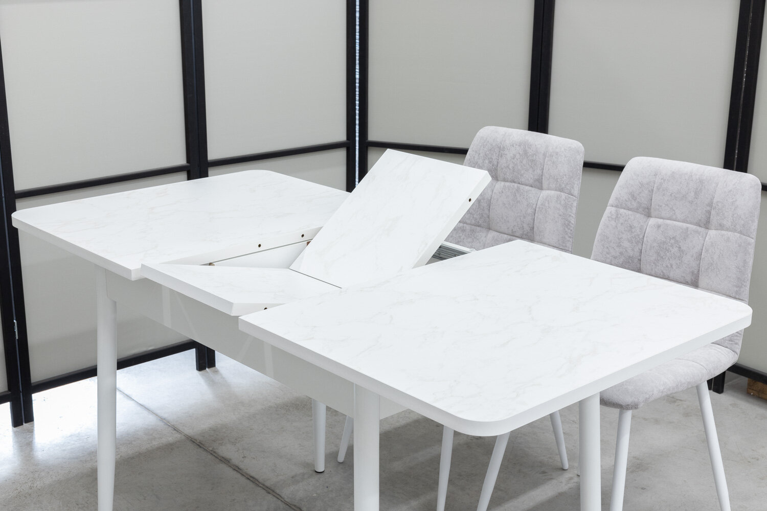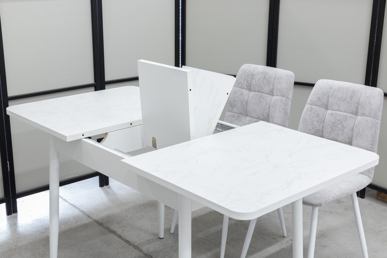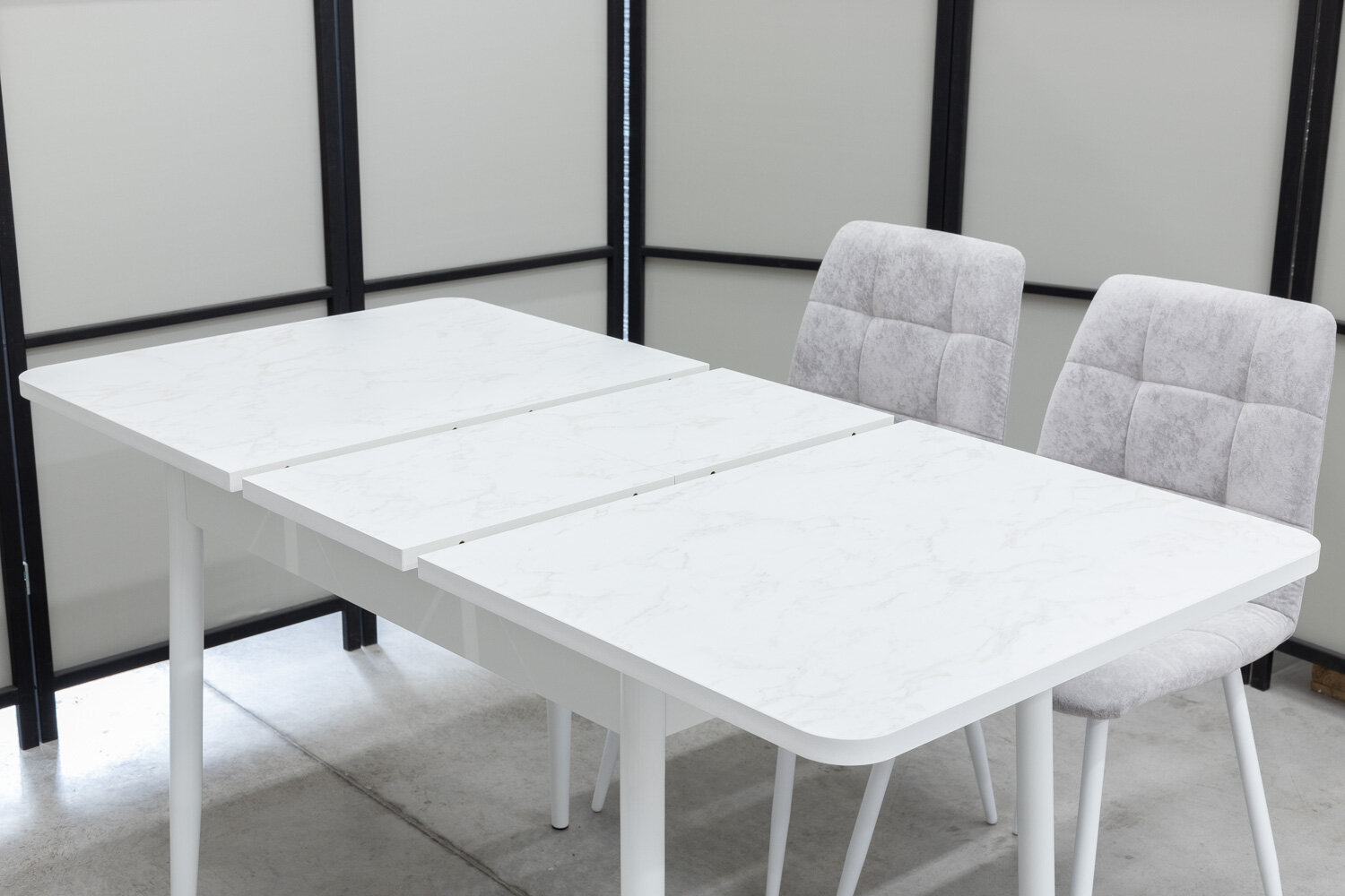 Обеденная группа Ост Дуо, стол белый термопластик, 110(140)х70 см, обивка стульев антивандальная, моющаяся, антикоготь, цвет светло-серый интересное: