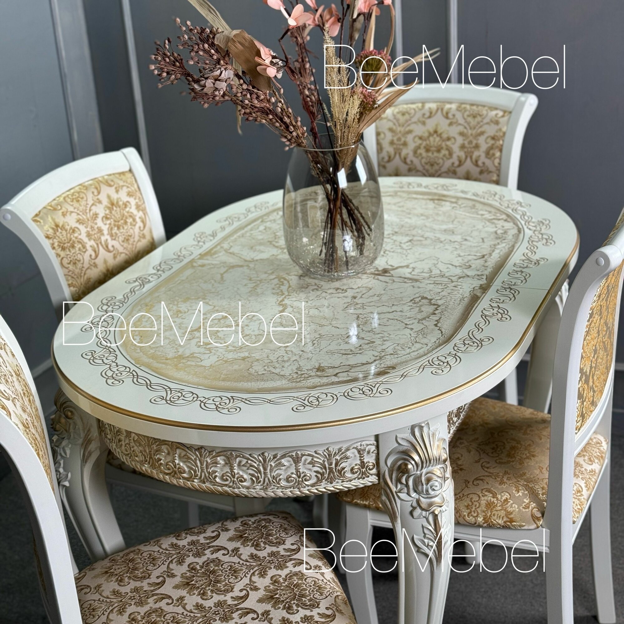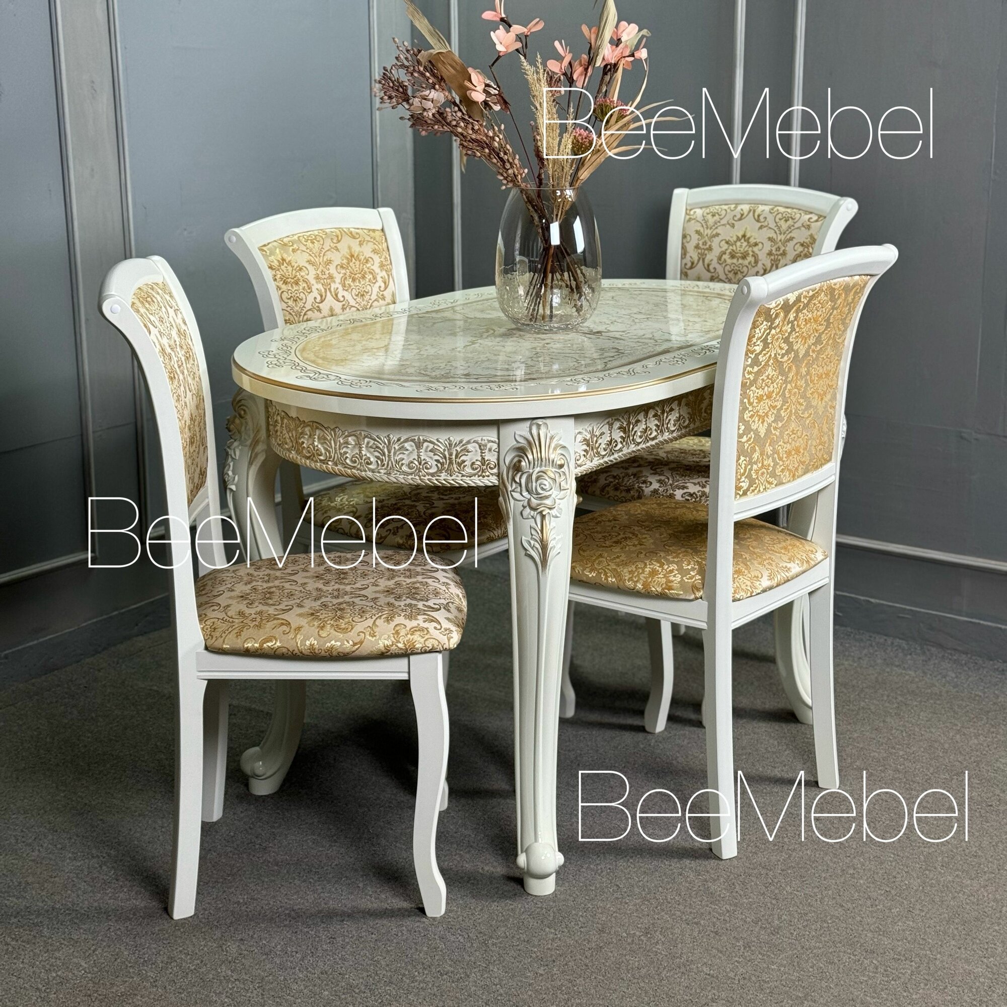 Обеденная группа, стол овальный 120 и 4 стула . Обеденная группа бежевая интересное:
