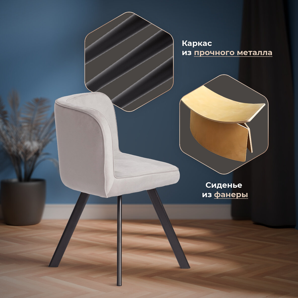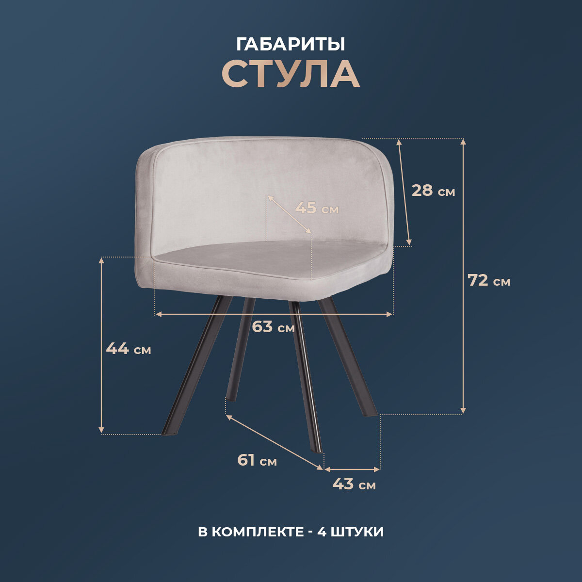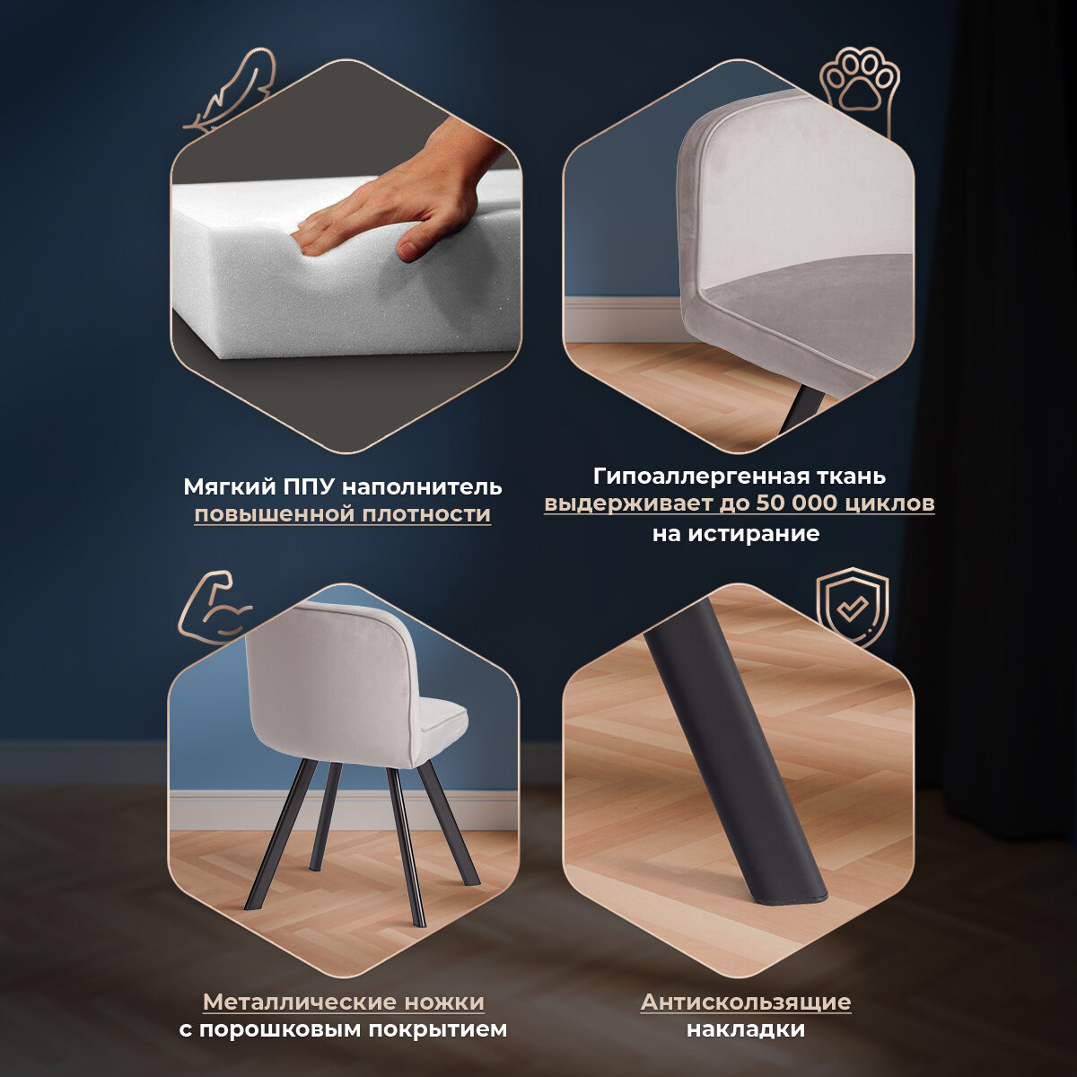 Комплект обеденный TetChair QUADRON (стол, 4 стула), МДФ, металл, велюр, светло-серый/черный интересное: