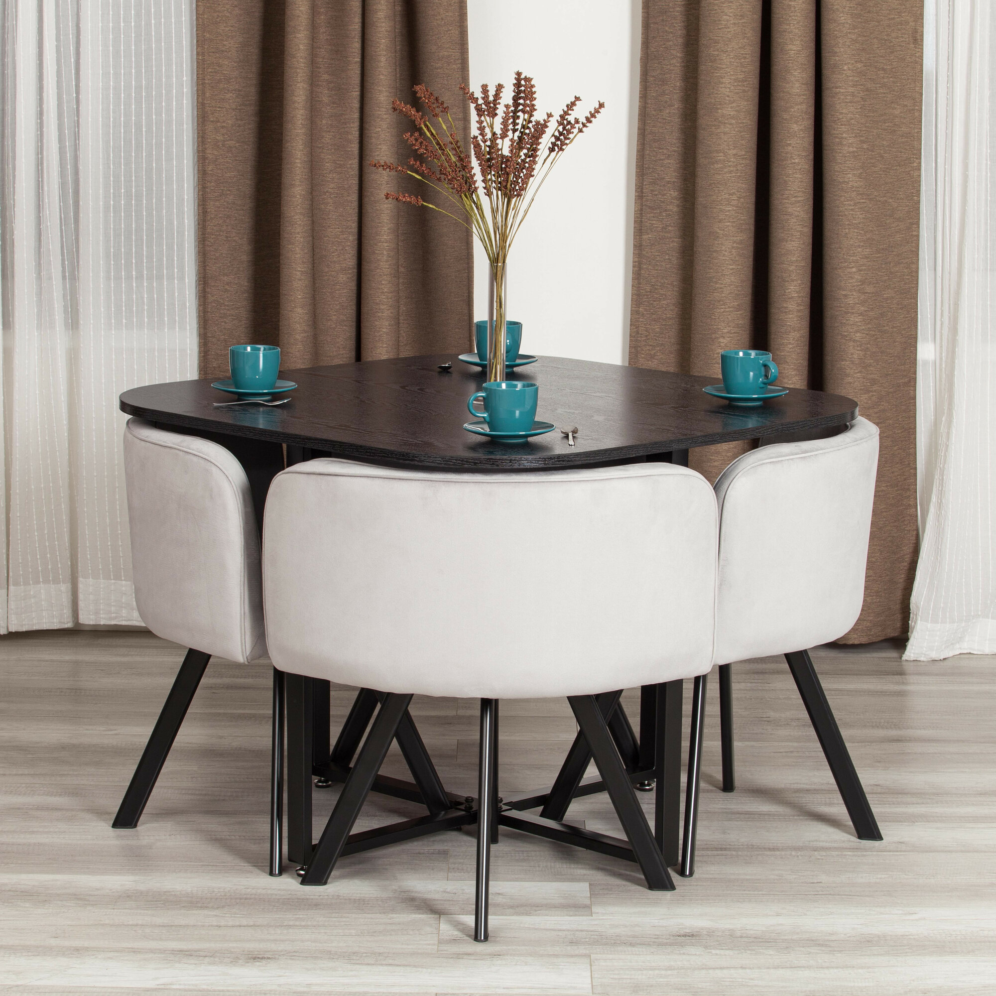 Купить Комплект обеденный TetChair QUADRON (стол, 4 стула), МДФ, металл, велюр, светло-серый/черный
