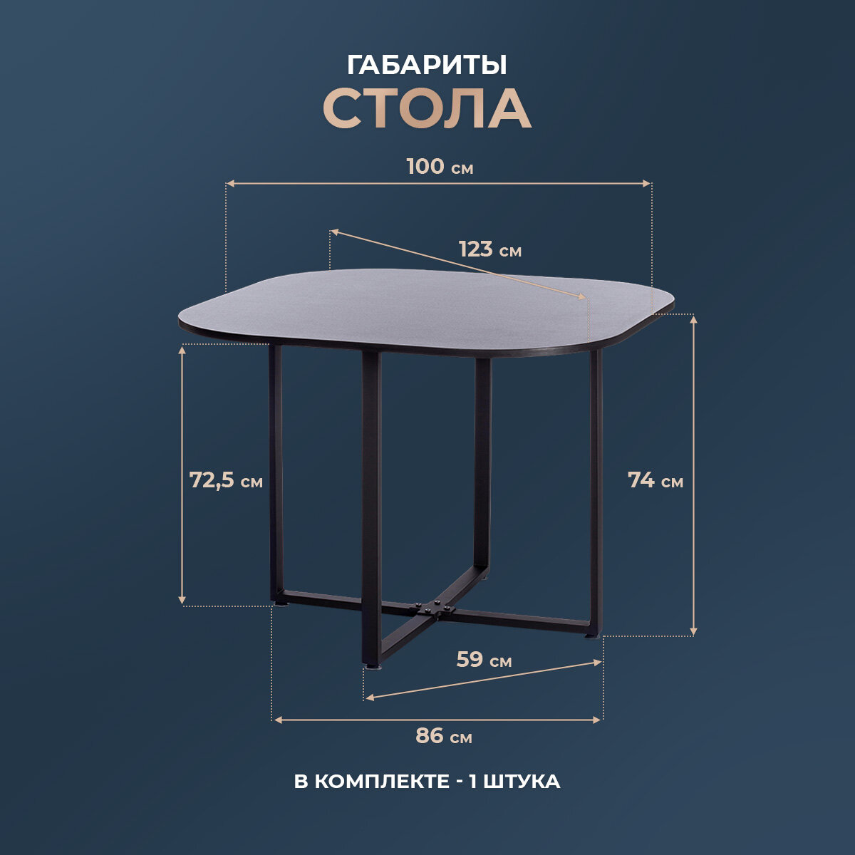 Стол кухонный овальный раздвижной Вальс О-1 СБ 95 ЧР 120х80, раскладной, серый бетон