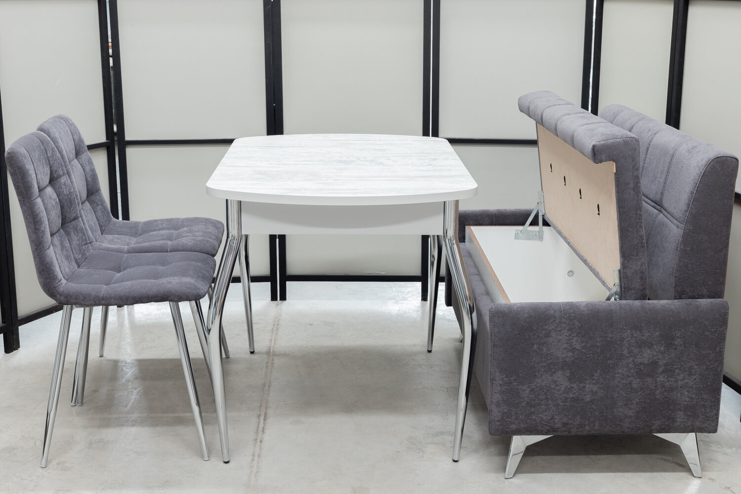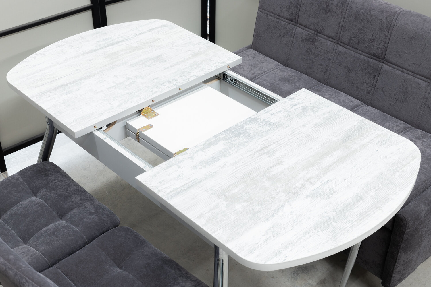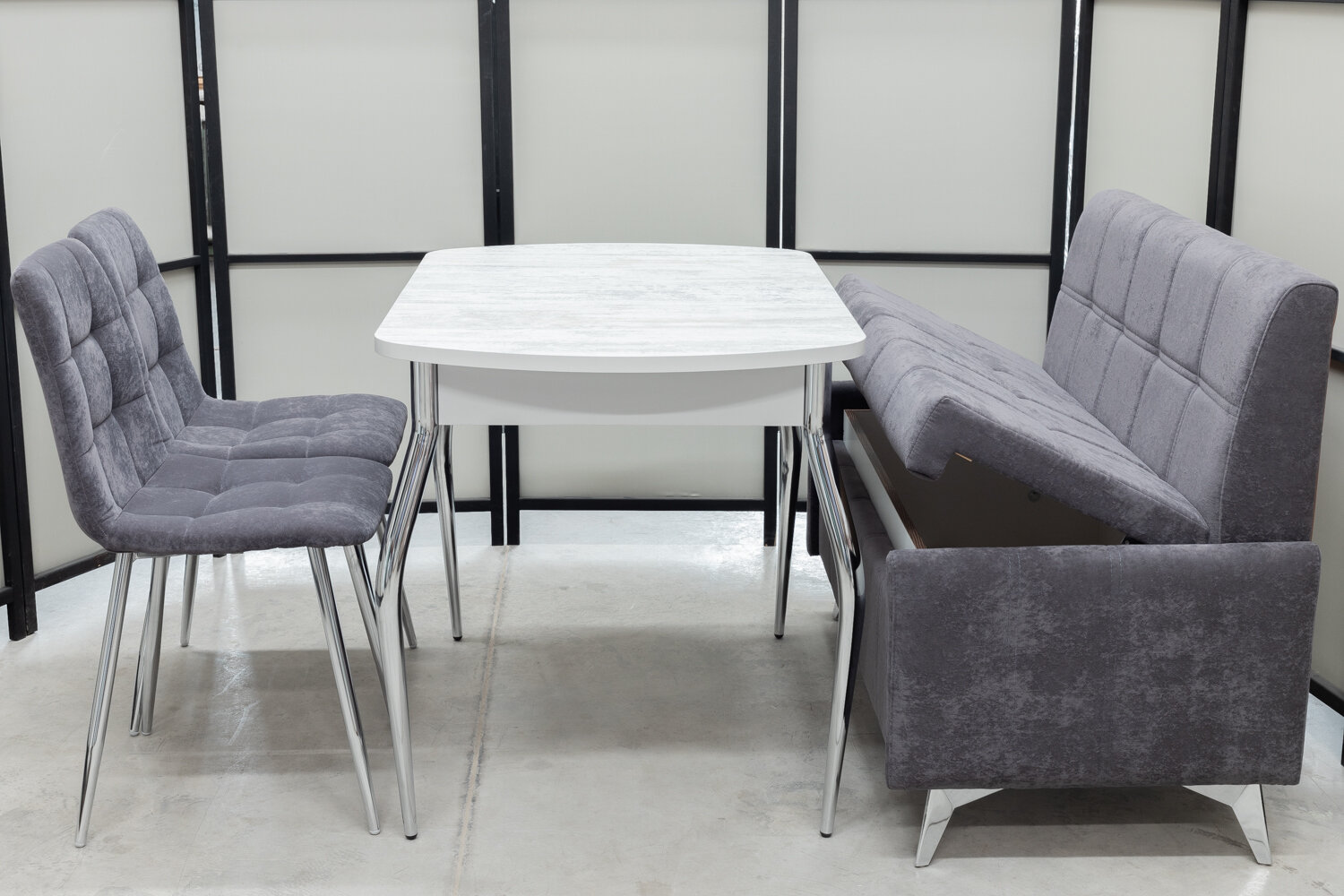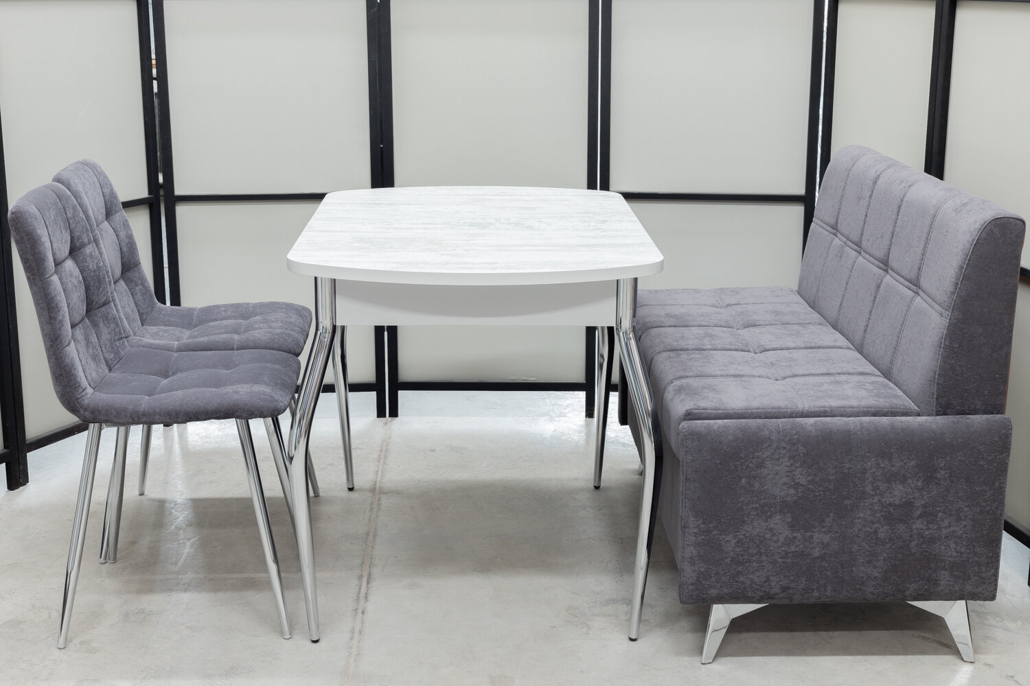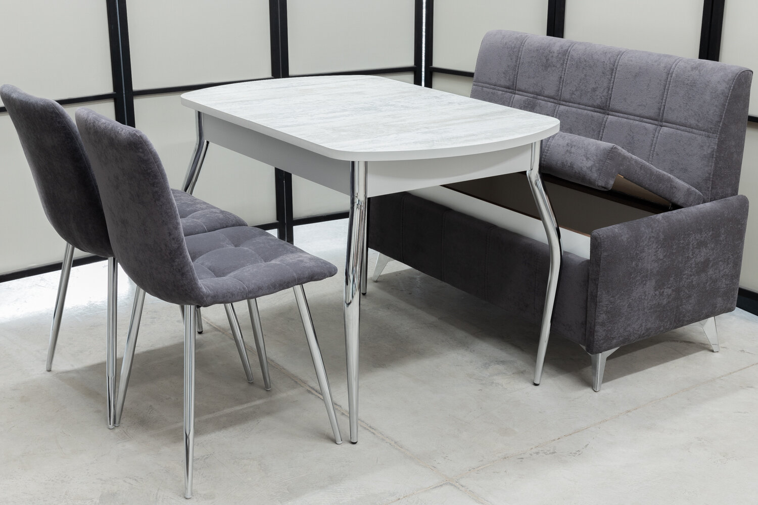 Обеденная группа Авалон-4 Дуо, стол Ост БМарк, 110(140)х70 см, обивка антивандальная, моющаяся, антикоготь, цвет светло-серый.