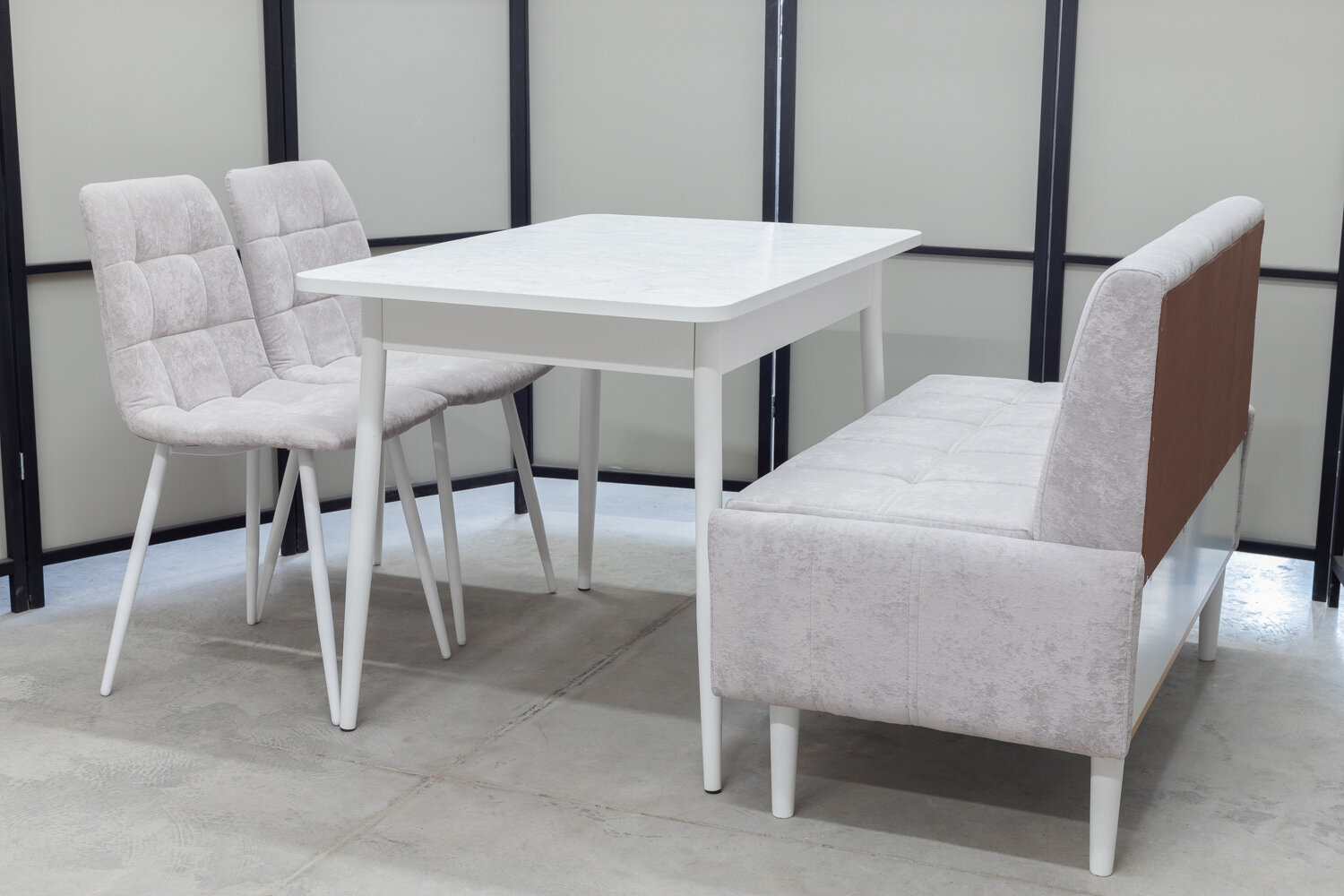Обеденная группа Авалон-4 Дуо, стол Ост БМарк, 110(140)х70 см, обивка антивандальная, моющаяся, антикоготь, цвет светло-серый. интересное: