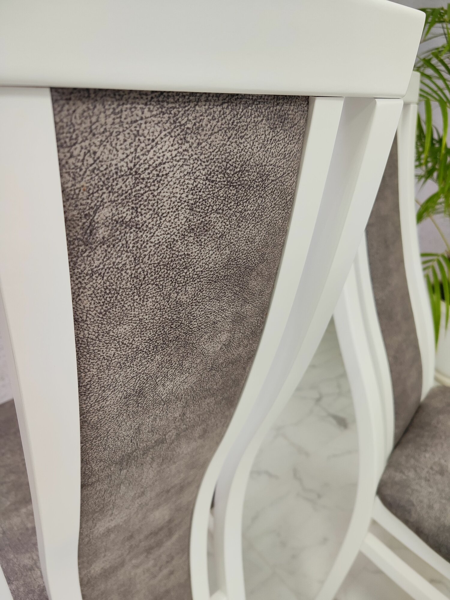 Обеденная группа Стол раскладной механизм "бабочка"вставки 130(170)х80х76 и 4 стула Белый/ патина серебро/ комплект мебели /