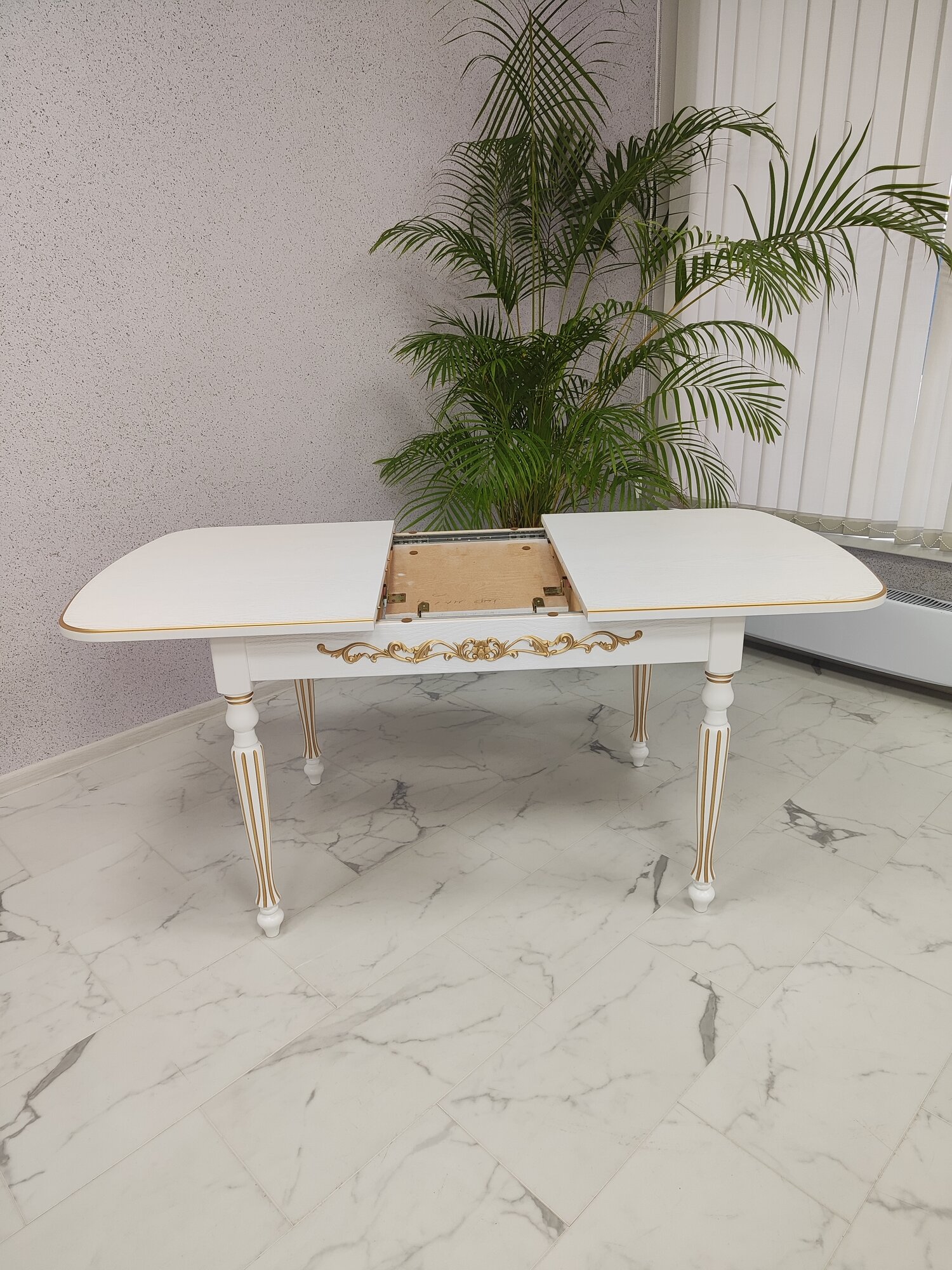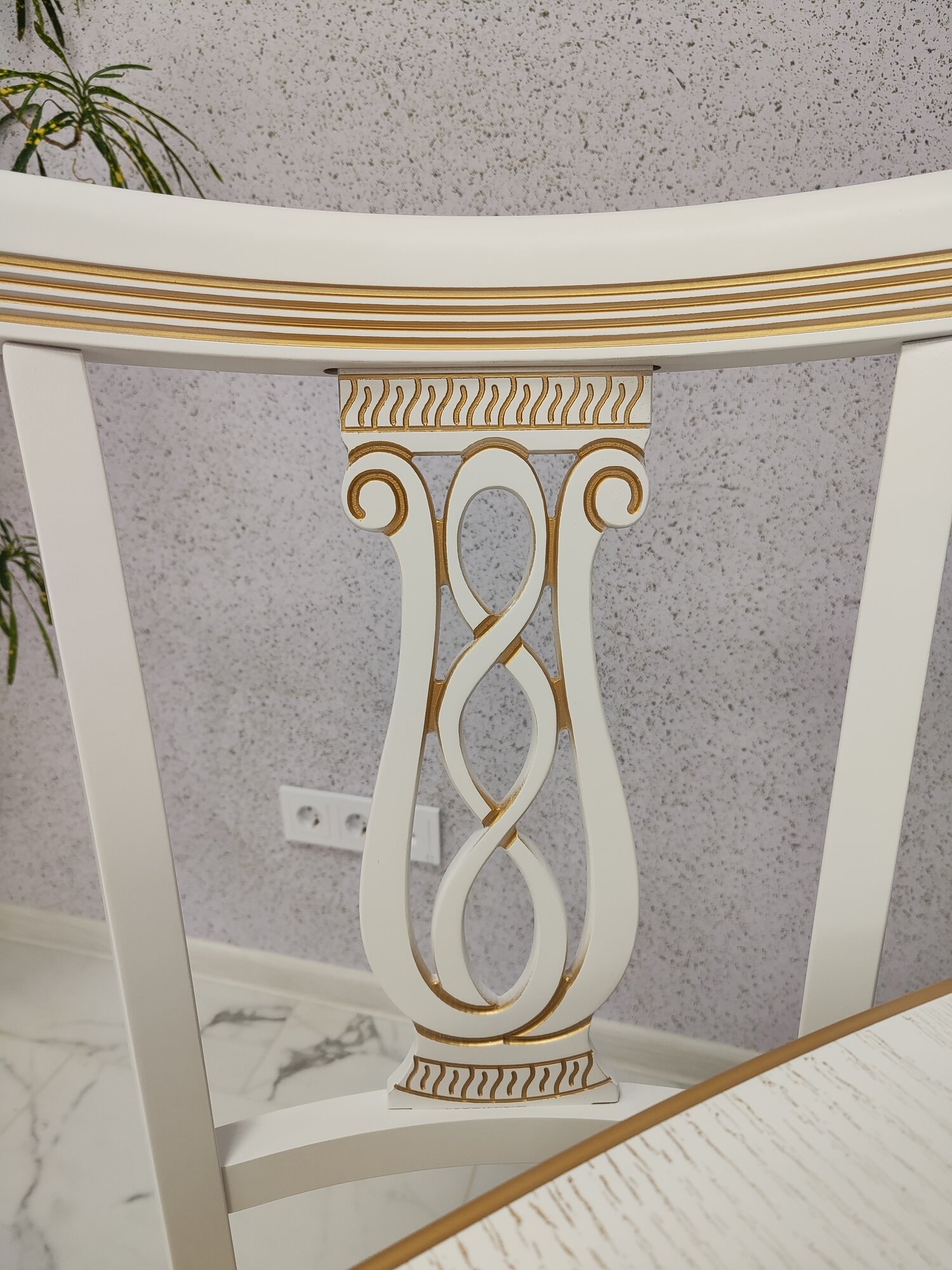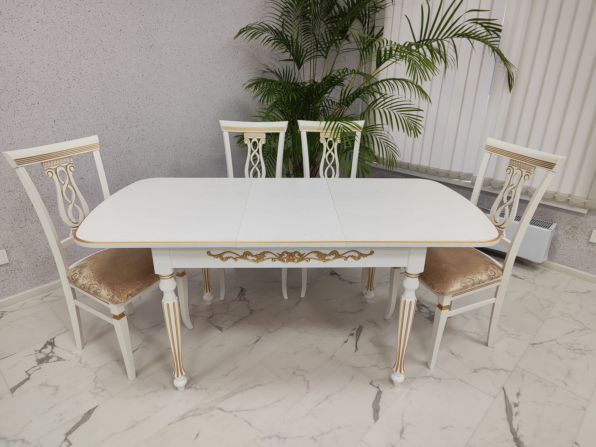 СохранитьОбеденная группа Стол раскладной механизм "бабочка"вставки 130(170)х80х76 и 4 стула Белый/ патина серебро/ комплект мебели / интересное: