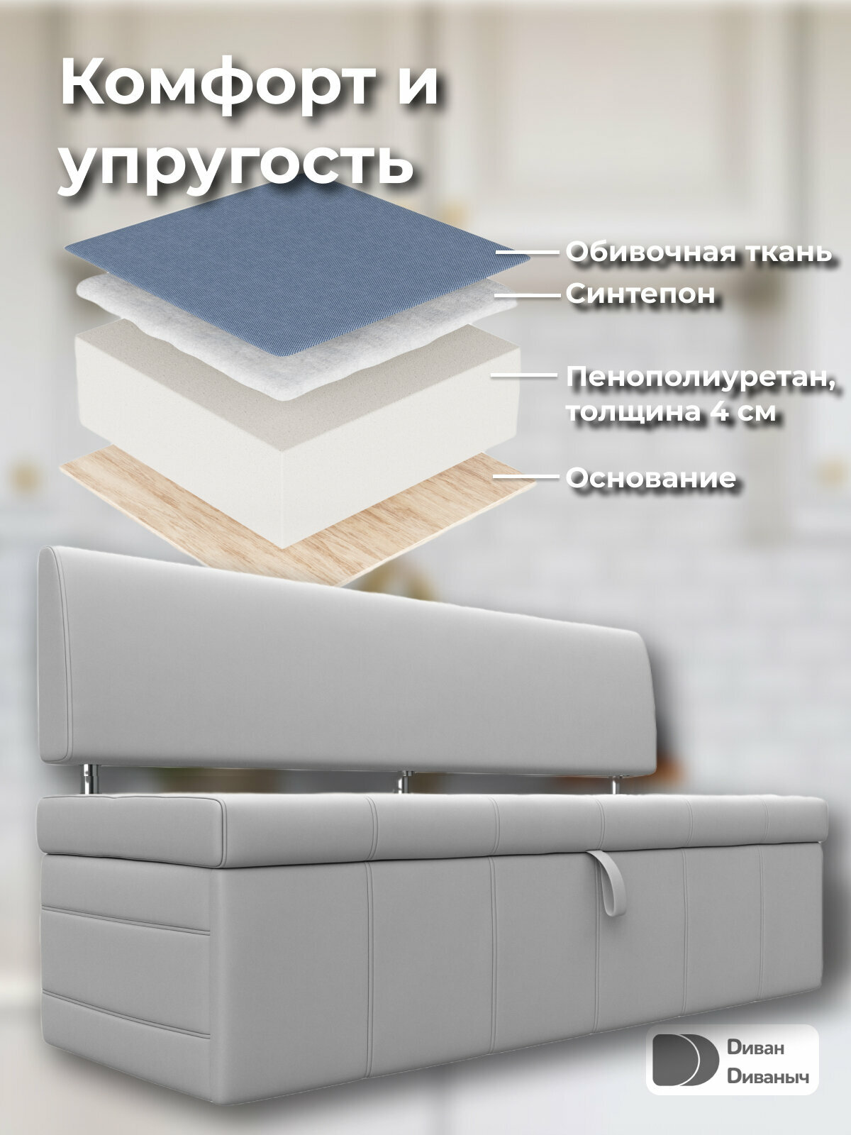 Диван кухонный прямой Лотос со спальным местом 182х100 см, Экокожа интересное: