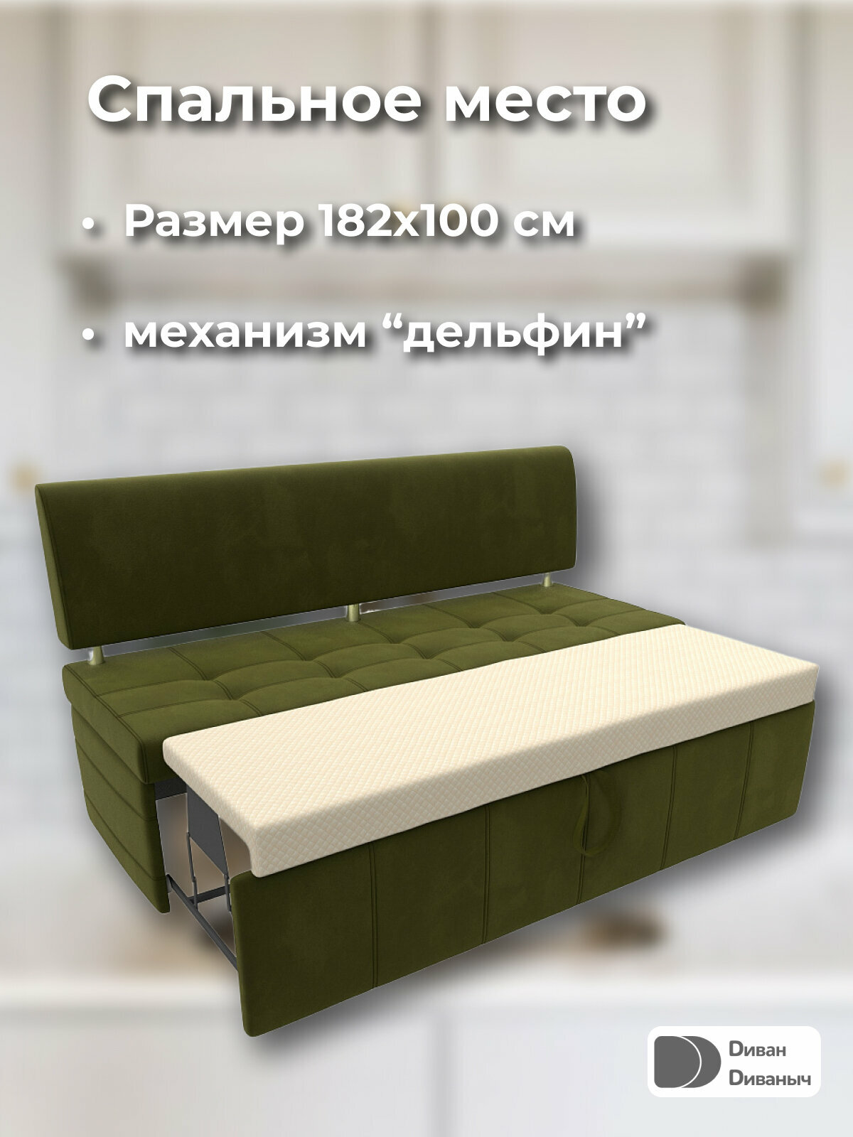Диван кухонный прямой Лотос со спальным местом 182х100 см, Микровельвет интересное: